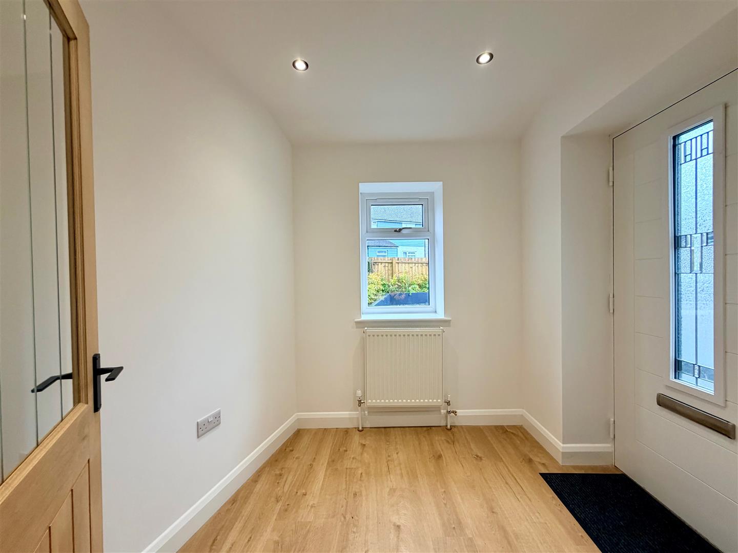 Window to the front elevation. Inset ceiling spotlights. Doorway opening to the hallway.