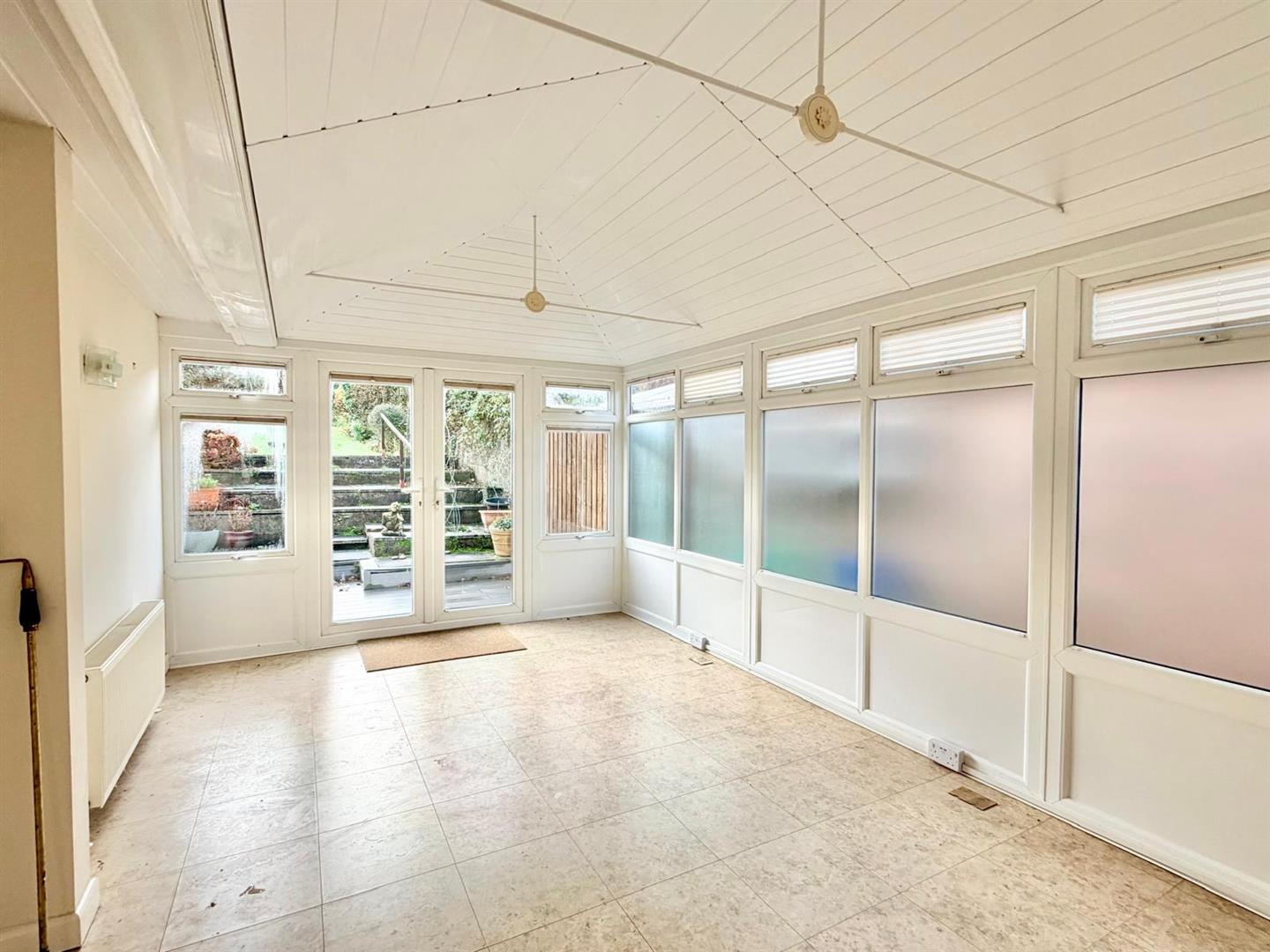 A generous conservatory with windows to 2 elevations beneath a pitched roof. French doors to the rear opening onto the garden. Plumbed with 2 radiators.