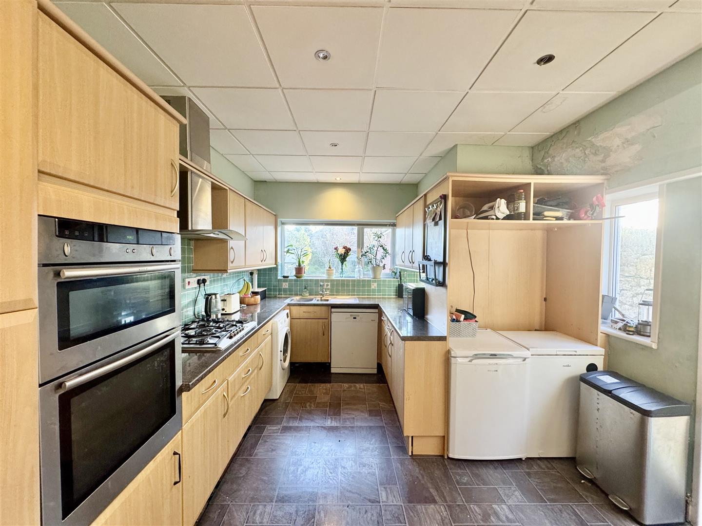 Windows to the side & rear overlooking the rear garden. uPVC double-glazed side entrance door. Modern fittings with a range of cupboard & drawer storage. Roll edge work surfaces. Tiled splash-backs. 1.5 bowl stainless steel sink. Integrated appliances include a 5 ring variable sized gas hob with illuminated extractor hood over, dual oven/grill, dishwasher & washer/dryer.
