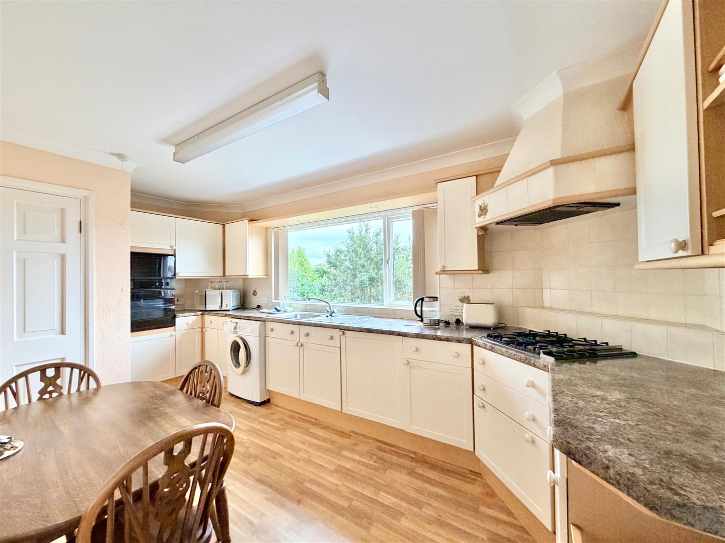 Space for breakfast table and chairs. Range of base and wall-mounted cabinets with matching fascias, work surfaces and tiled splash-backs. Stainless-steel single bowl single drainer sink unit. 4-burner gas hob with a cooker hood above. Built-in double oven and grill. Space and plumbing for washing machine. Integral fridge. Window to the rear elevation overlooking the garden with lovely views over Plymstock and beyond towards Dartmoor.