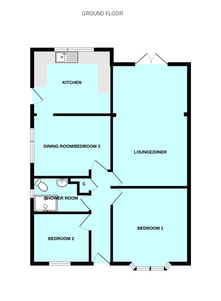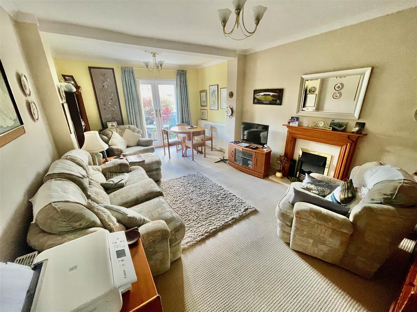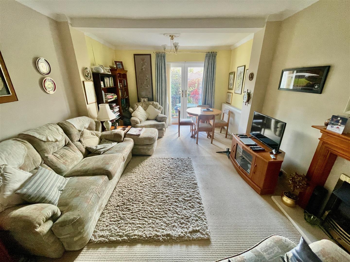 The accommodation comprising a hall, useful storage cupboards, the bedrooms both located to the front, one with bay window & generous-sized double. The second bedroom also good-sized. A well appointed modern shower room with wc, wash hand basin & shower with thermostatic mixer control. At the rear a spacious extended lounge/dining room with French doors overlooking & opening to the rear garden. A fireplace with electric fire. To the back of this room a sealed off archway which was previously used to provide separate access into the kitchen. This could potentially be opened up. Walk-through dining room which could be separate again to be a third bedroom if desired. A good-sized fitted kitchen to the rear with window overlooking the rear garden & side entrance door.