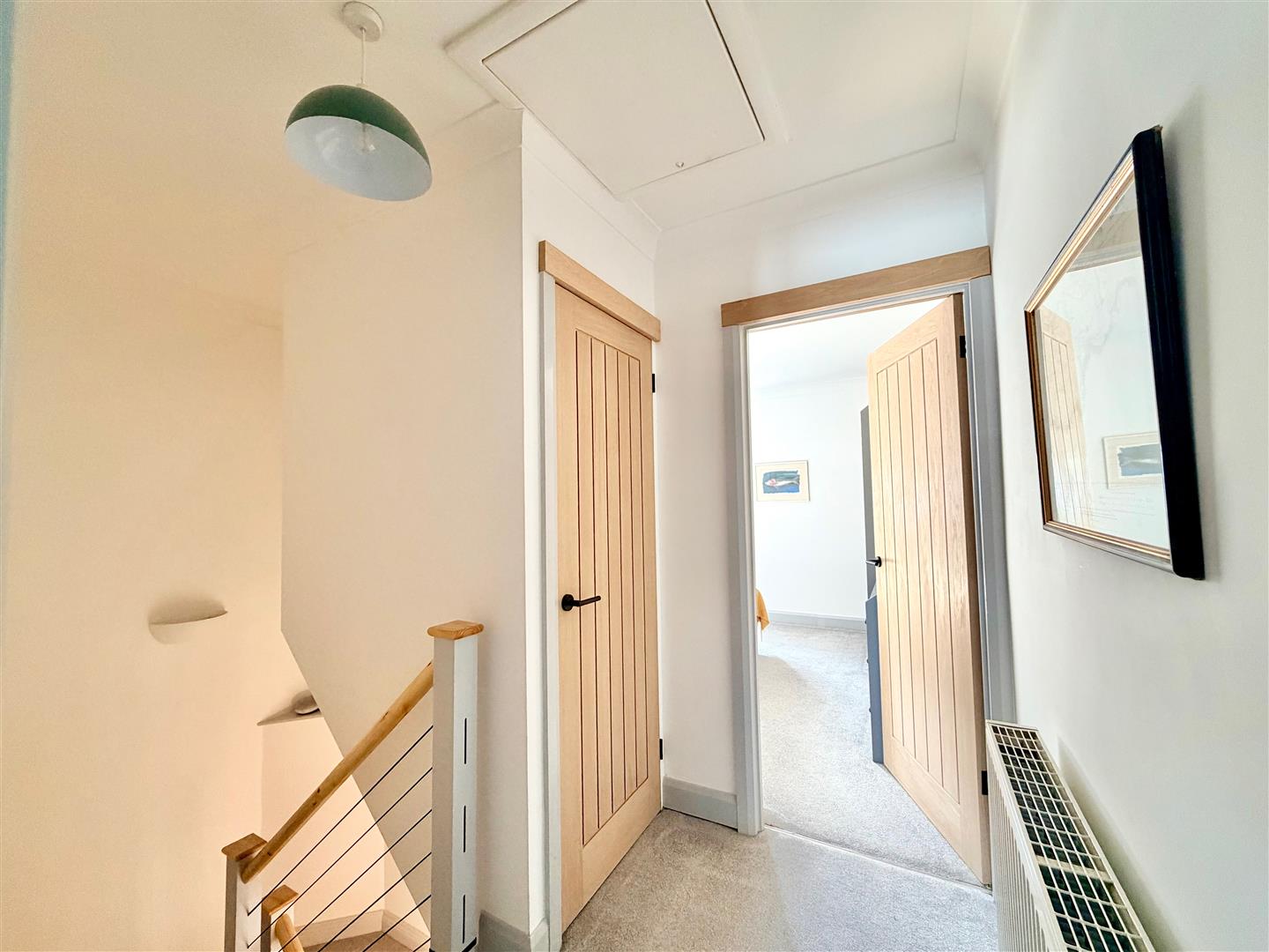 Doors providing access to the first floor accommodation. Loft hatch. Over-stairs storage cupboard with shelving.