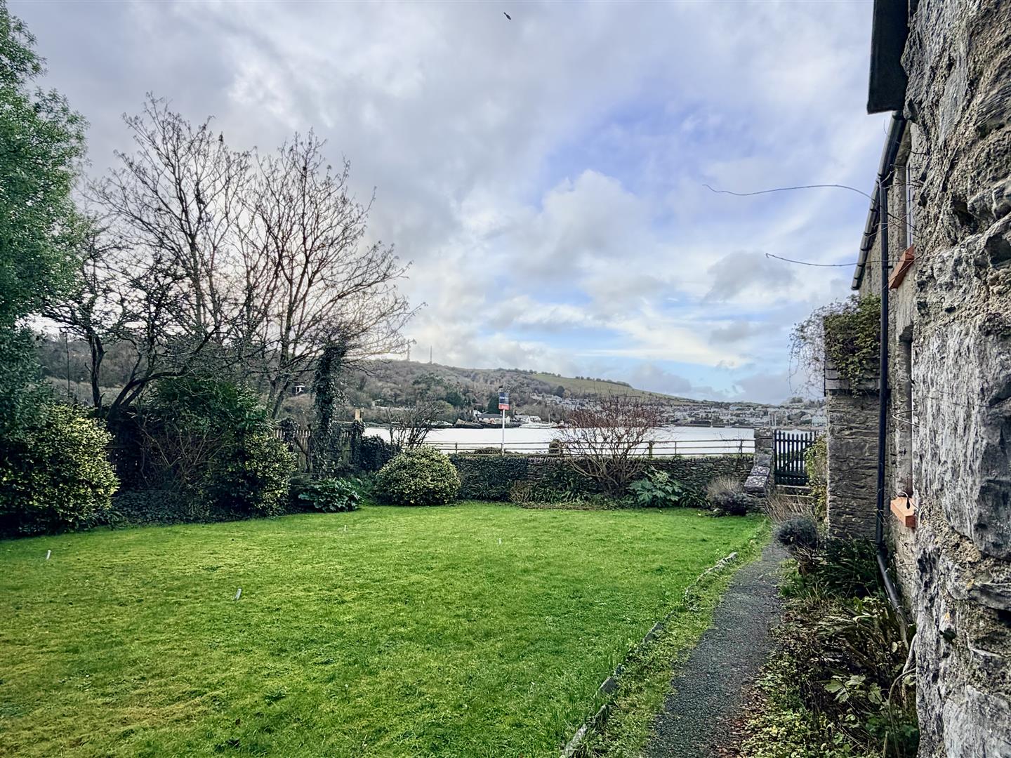 To the rear is a courtyard with small outside shed & covered store area. To the front, gardens are laid to lawn with further timber shed, shrubs & lovely views over Hooe Lake towards Staddon Heights.