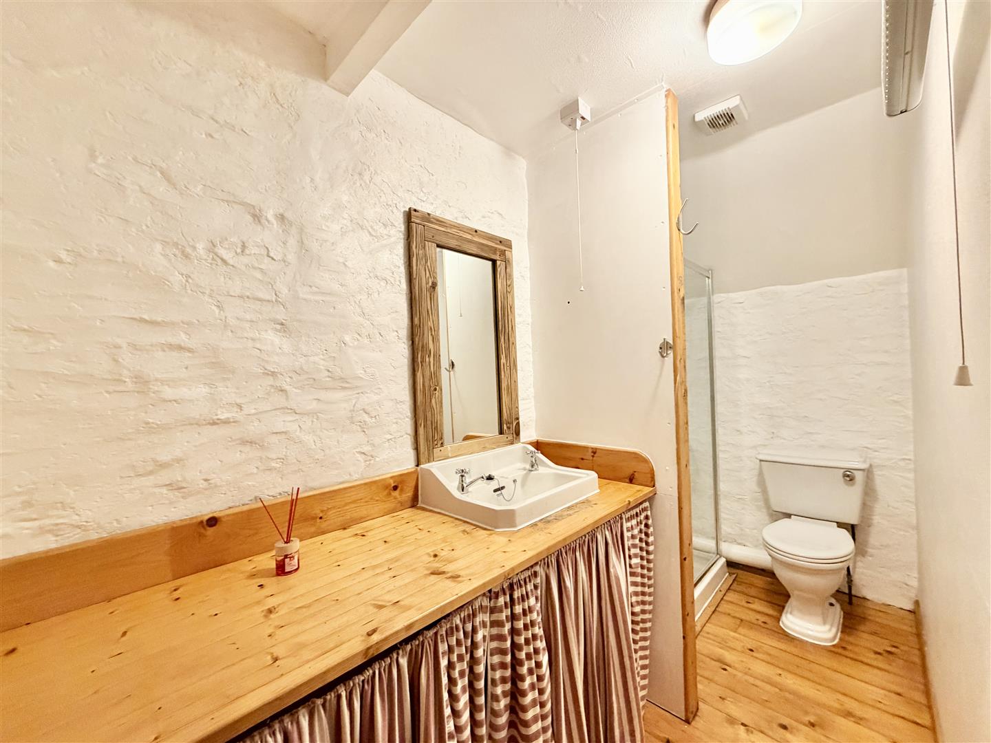 Situated to the front with window overlooking the gardens & Hooe Lake. Exposed floorboards. Electric heater.