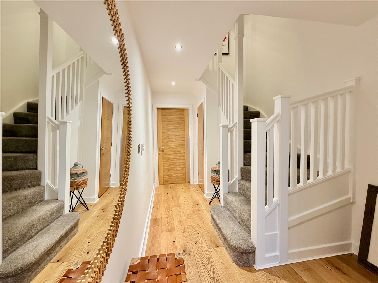 Doors providing access to the ground floor accommodation. Staircase ascending to the remaining accommodation. Under-stairs storage cupboard with lighting. Oak flooring. Inset ceiling spotlights.