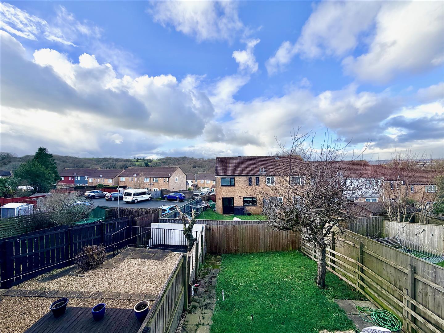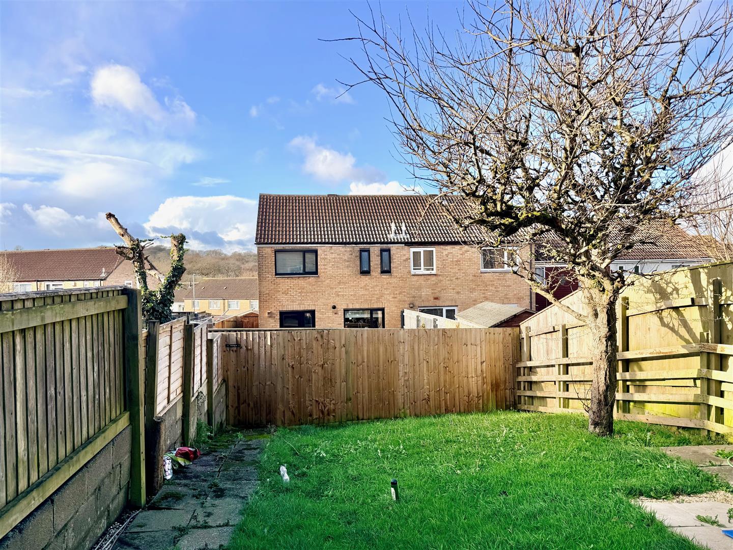 To the front the garden is laid to lawn plus a patio area and an outside shed. The rear garden, which enjoys a westerly aspect, is mainly laid to lawn together with timber decking and a patio area. There is also an apple tree.
