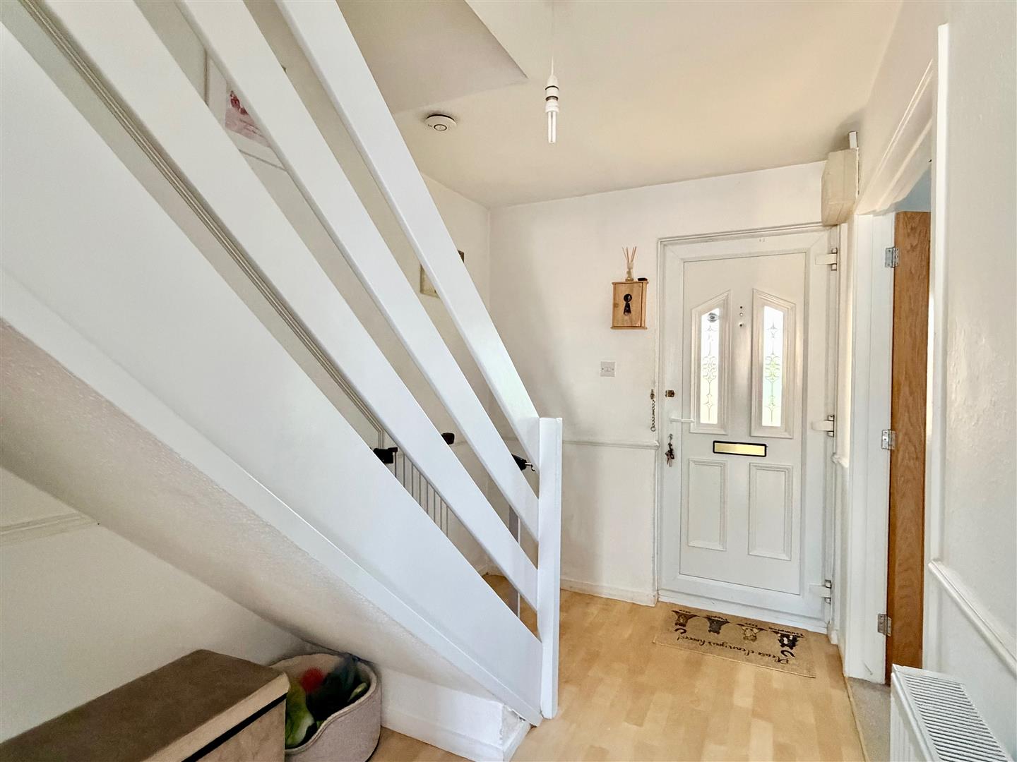 Providing access to the ground floor accommodation. Staircase ascending to the first floor. Open-plan area beneath the stairs.