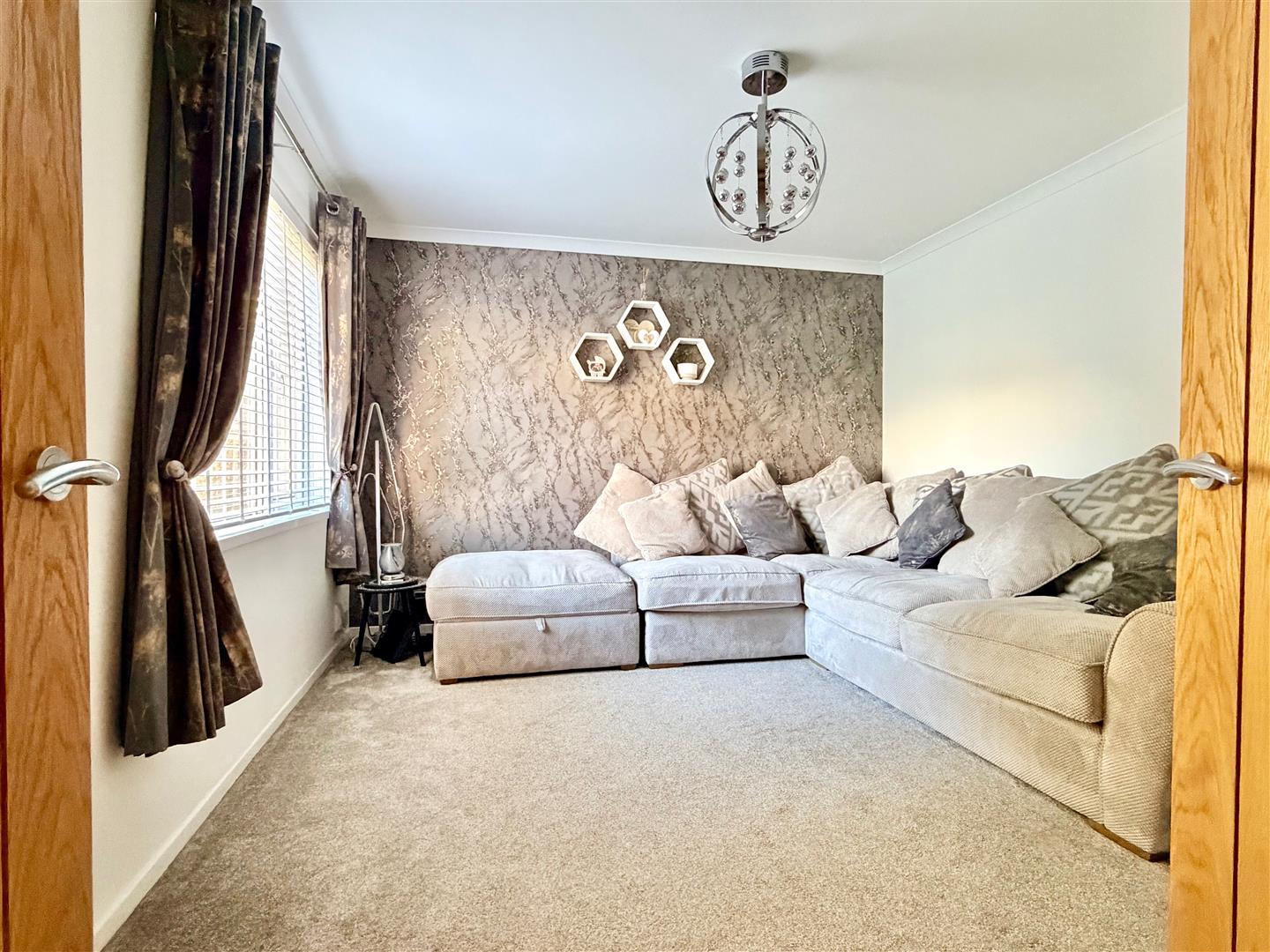 Accessed through double doors. Window with fitted blind to the front elevation.