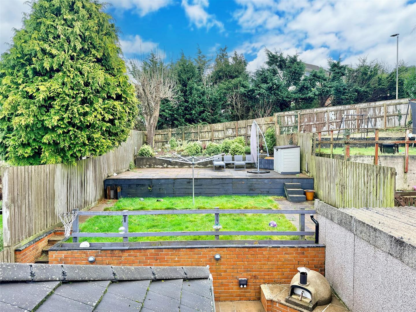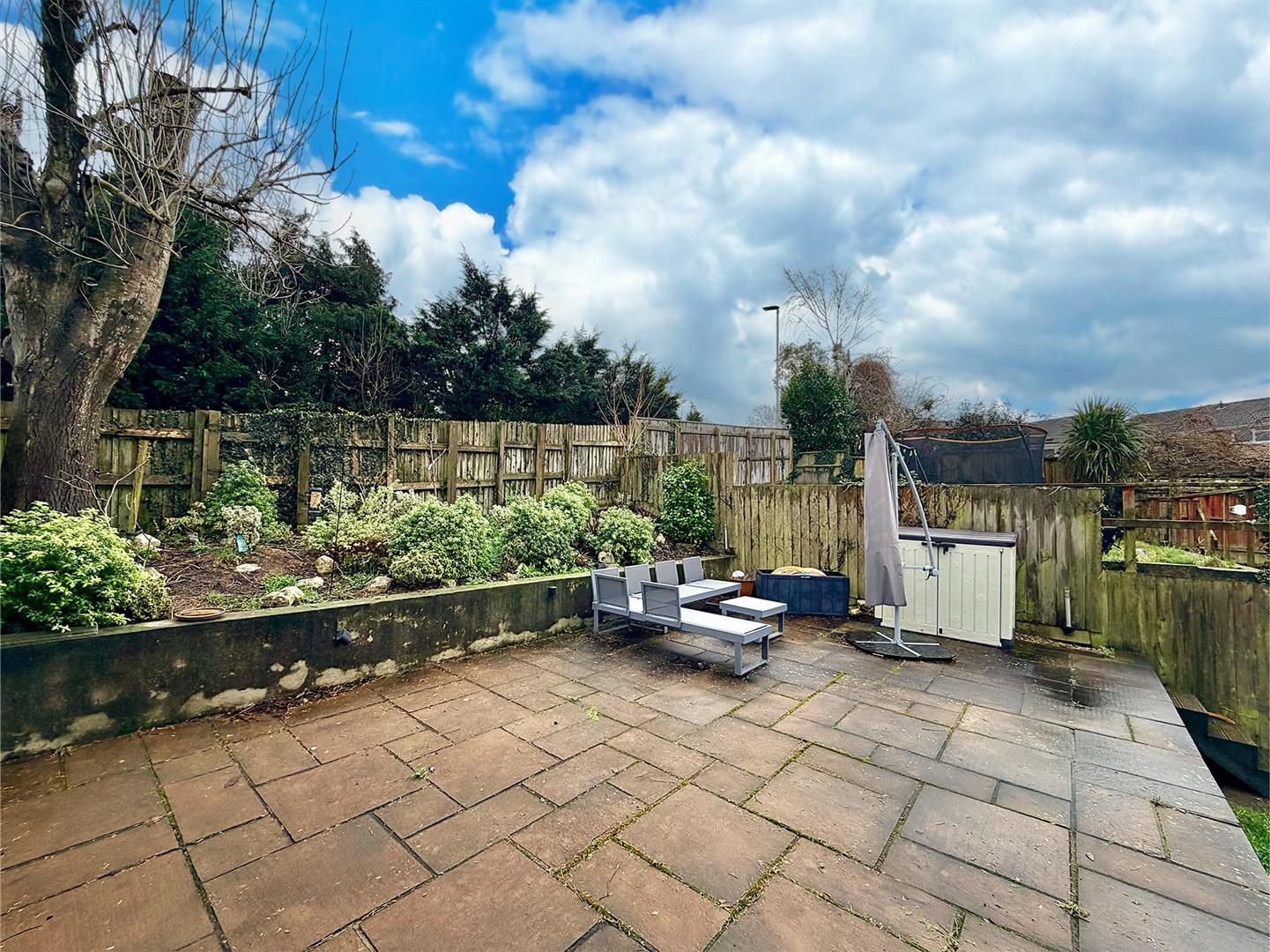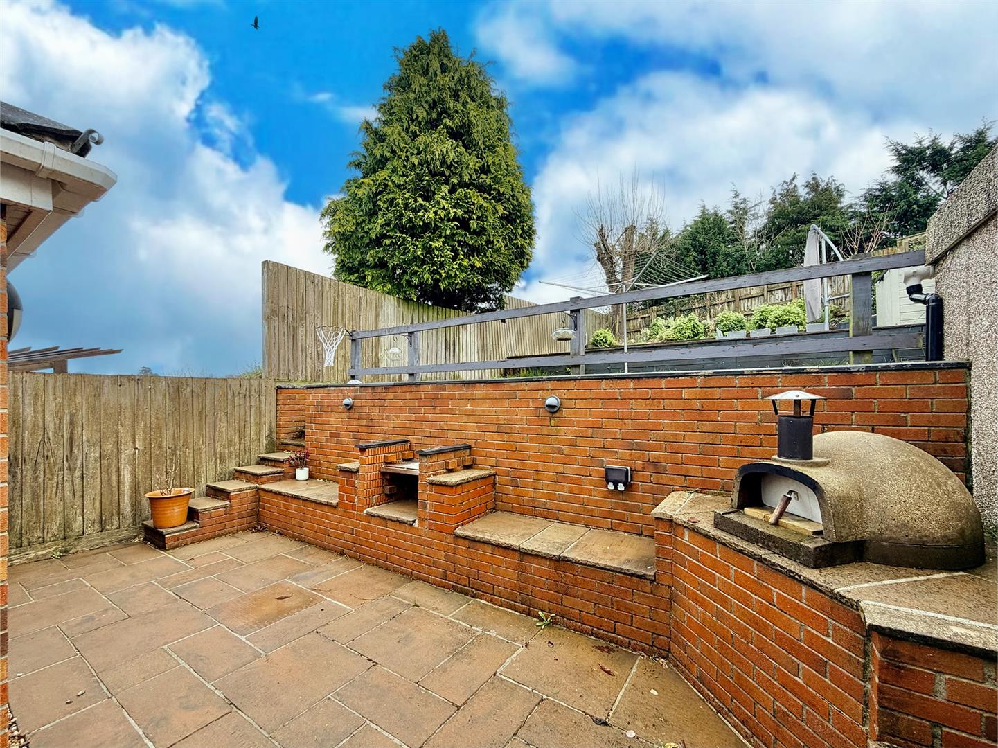 A driveway provides access and runs alongside the property to the garage. To the front there is a paved parking area. The rear garden has areas laid to patio and lawn. There is a brick-built barbecue area and a side access gate opening onto the driveway.