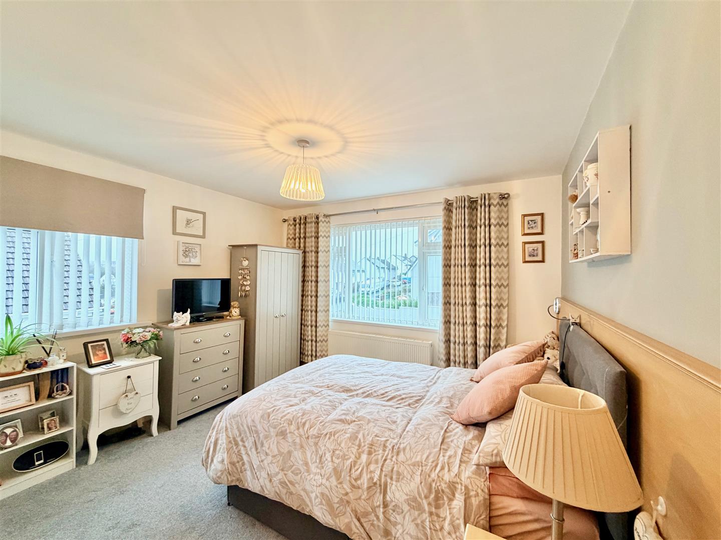 A dual aspect room with windows with fitted blinds to the front and side elevations. Built-in wardrobe. Doorway to the ensuite shower room.