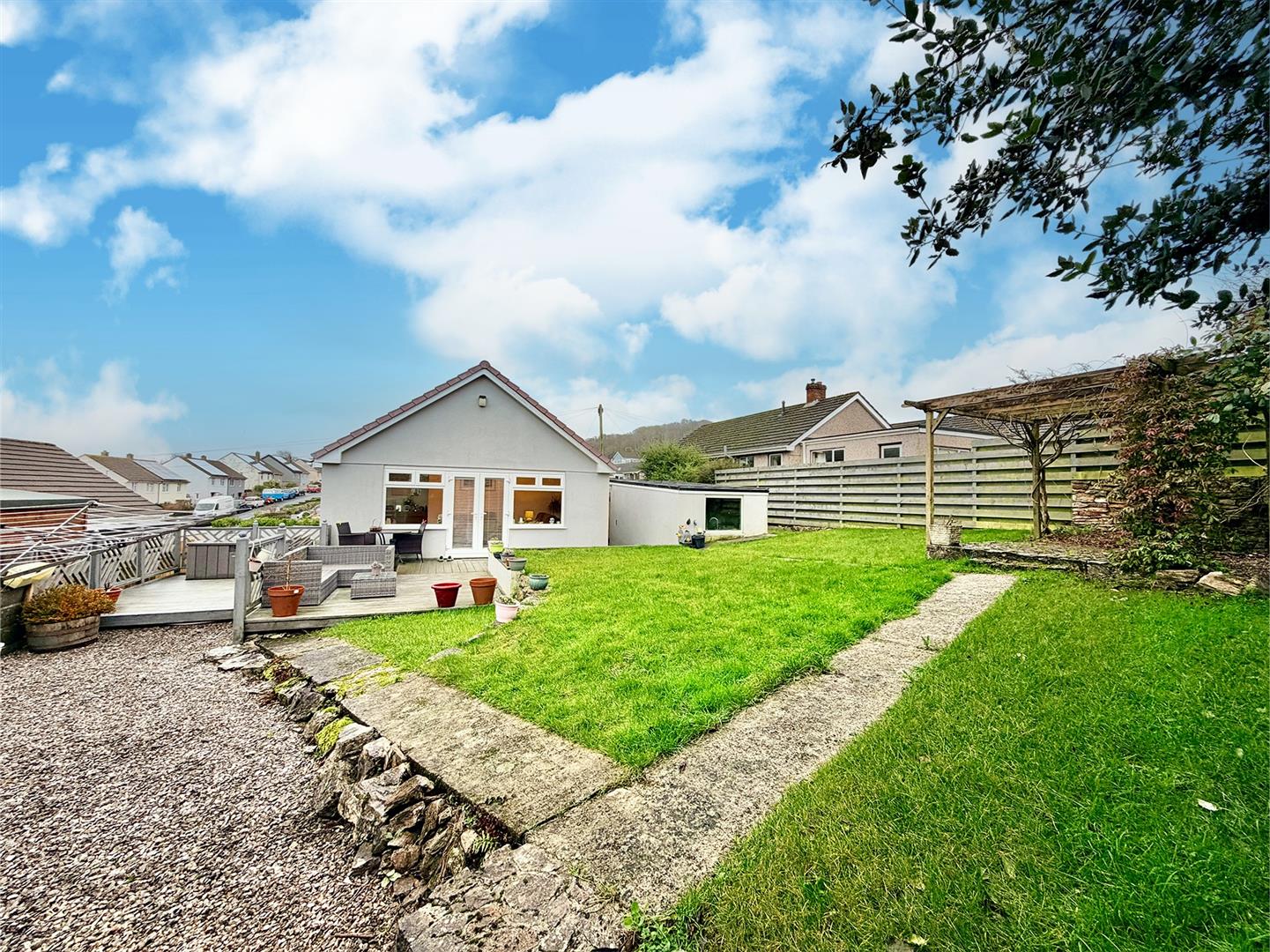 A resin driveway runs alongside the property providing ample off-road parking together with a parking area to the front elevation, also laid to resin. A pathway leads to the rear between the bungalow and the garage. There is a gravelled area to the other side elevation. The rear garden is laid to lawn, decking and an area laid to chippings. There is a timber shed and pergola. From the rear garden there are lovely views.