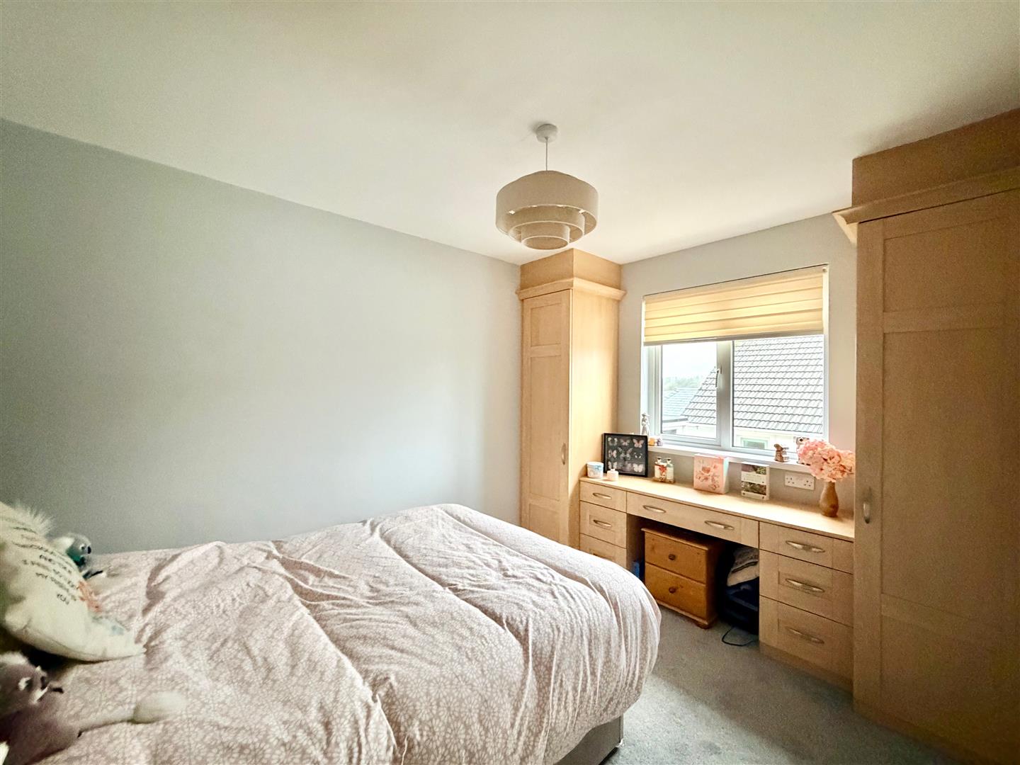 Window to the side elevation with views. Built-in wardrobes and dressing table.