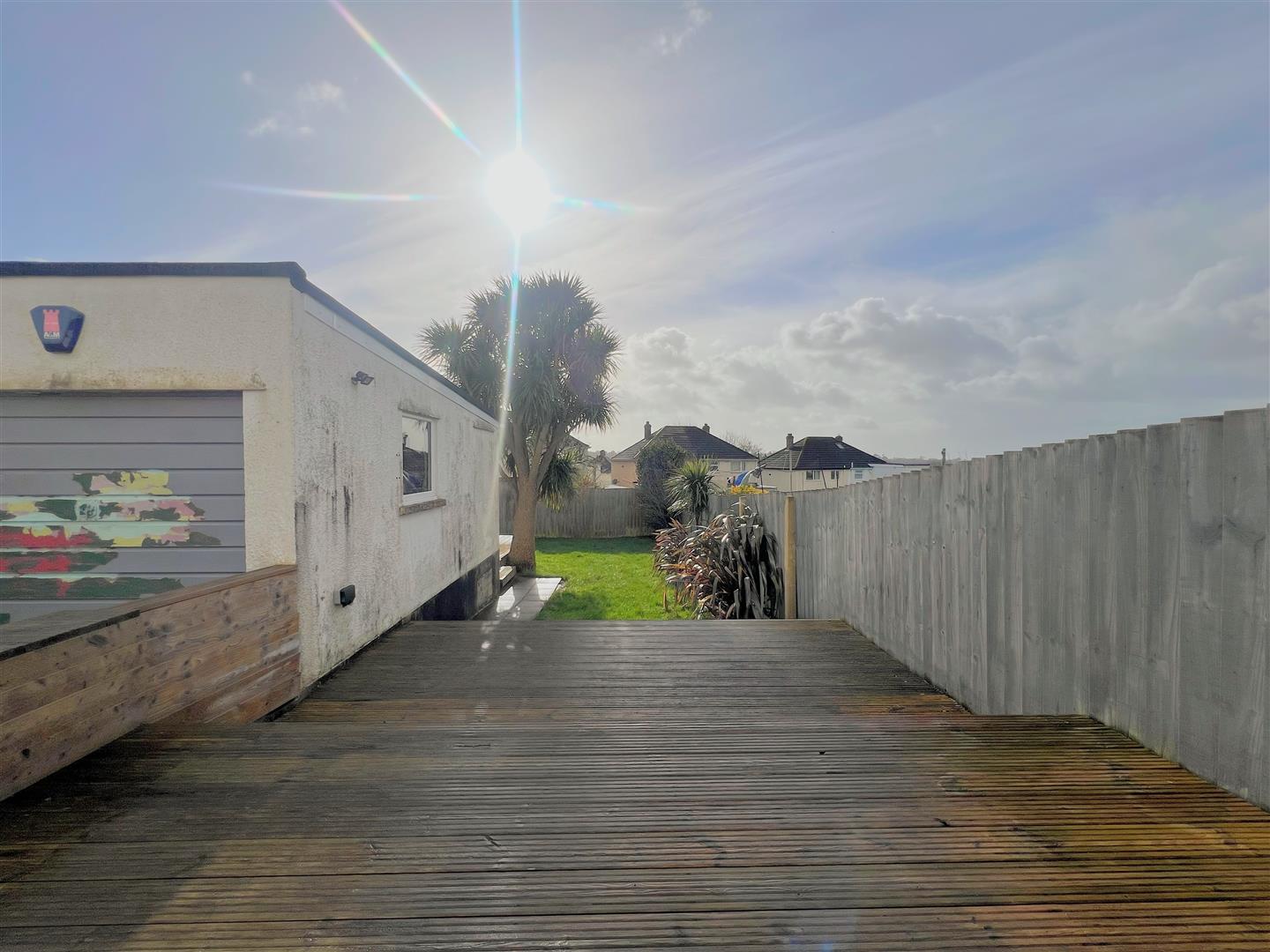 To the front is a low maintenance garden laid to artificial grass together with some raised flower beds. A shared driveway leads to a wooden gate, providing access to the rear garden and garage. A path leads from the shared driveway, along the front elevation to the entrance porch. To the rear there is a fully-enclosed, generous, southerly-facing garden comprising 2 decked seating areas and an area laid to lawn. There is outside lighting and an outside power point.
