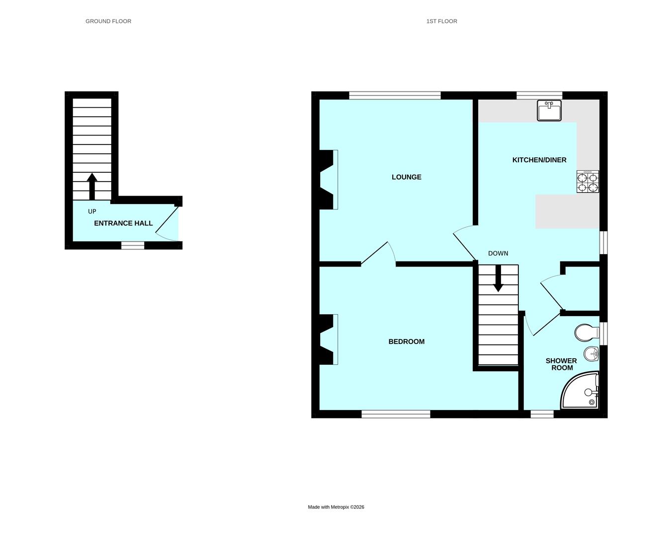 Dual aspect with uPVC double-glazed windows to the front & side. Doors leading to the shower room, the lounge & storage cupboard.