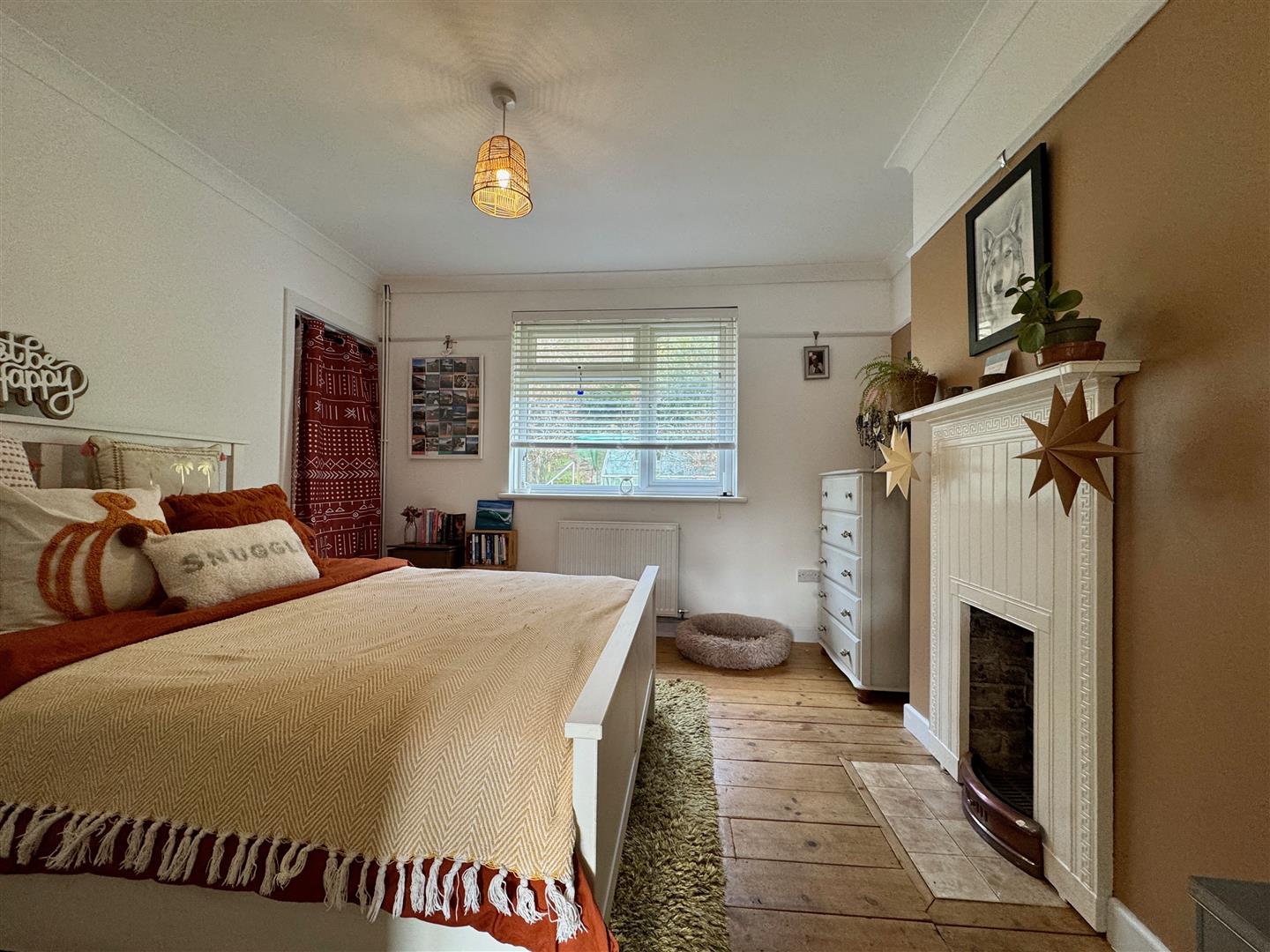 Feature fireplace with a cast iron mantle & surround with open grate & tiled hearth. Exposed wooden floorboards. Picture rail. Storage recess. uPVC double-glazed window to the rear overlooking the garden.