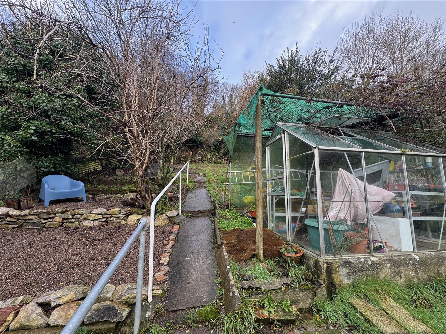 The property is approached via a concrete path with 2 series of steps which lead up to a level path to the front door of the property, with a wooden picket gate before. Two purpose built storage sheds. Path with some steps bisects the garden. The first section belongs to the lower ground floor & the second half of the garden belongs to the flat, whereby a path continues two sections of stone chippings, a greenhouse to one side & up to a lawned area towards the rear.