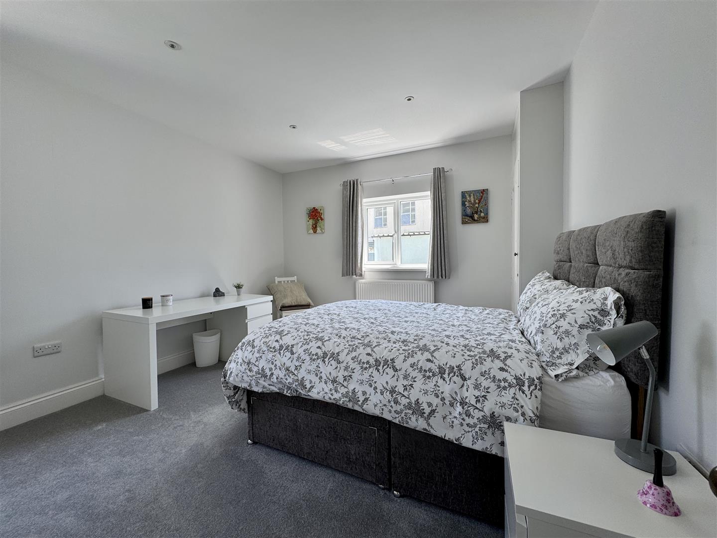 A dual aspect room with uPVC double-glazed window to the side & rear. Door to a fitted storage cupboard. Ceiling spotlights.