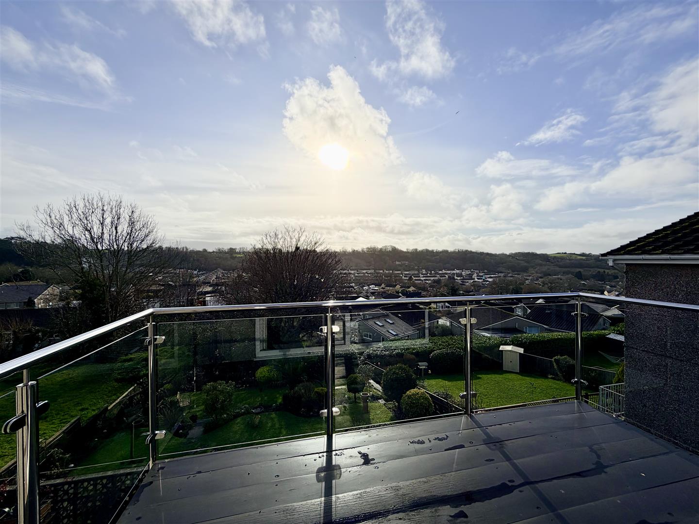 The balcony offers beautiful, elevated views over Plympton and beyond and features hardwood flooring and stainless-steel balustrades with toughened glass panelling.