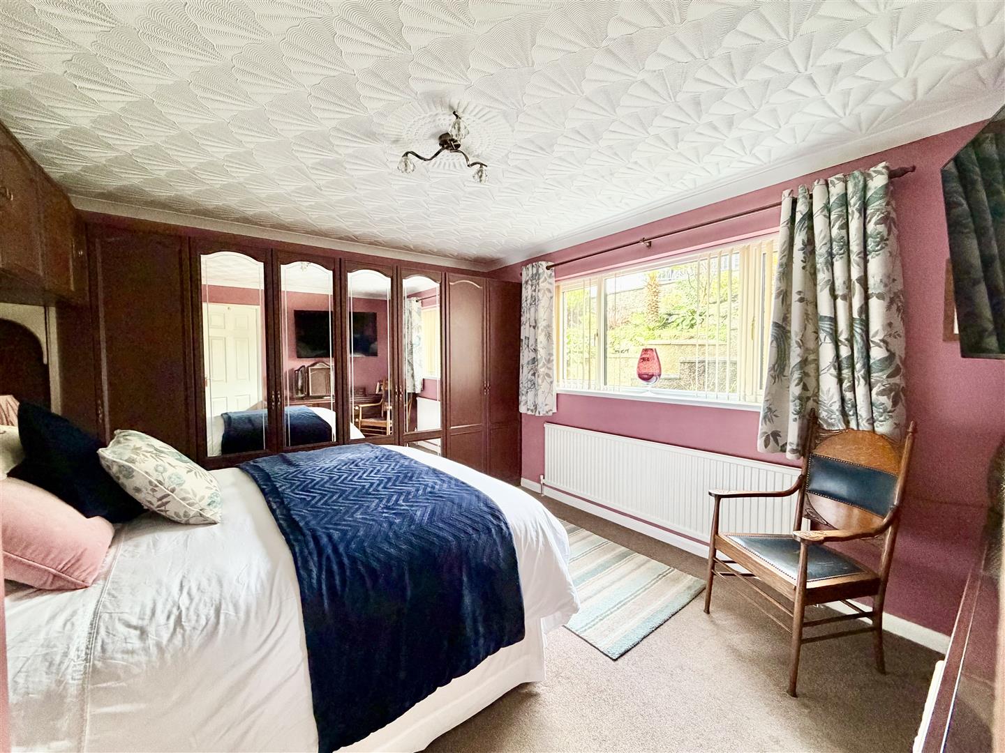 Range of fitted bedroom furniture including a bed storage surround, wardrobes and a dresser. uPVC double-glazed window to the front elevation.