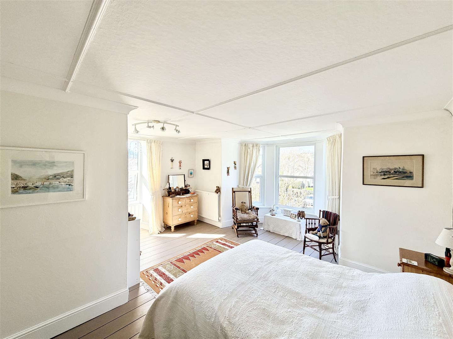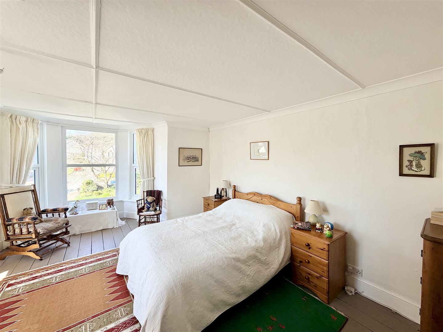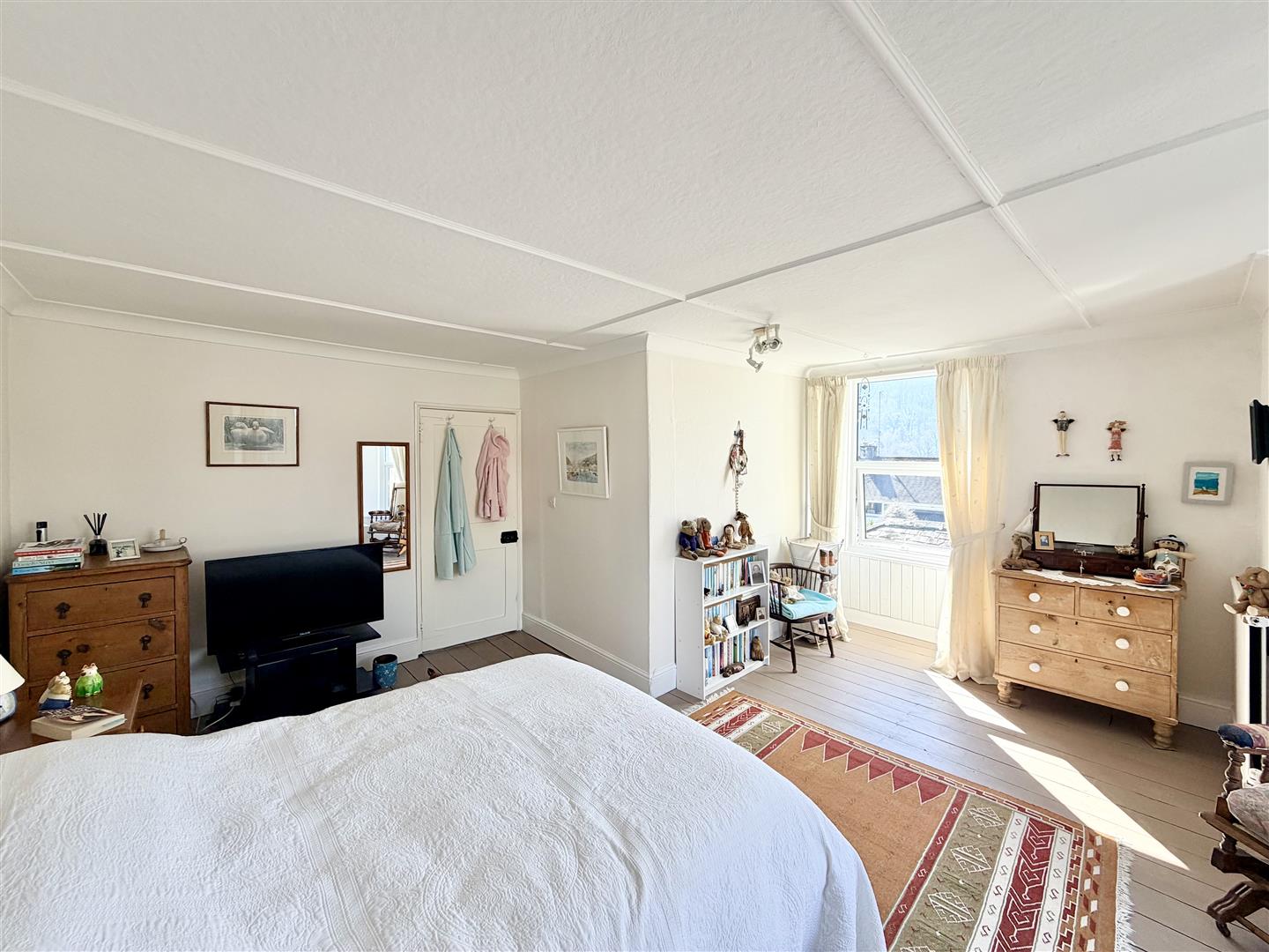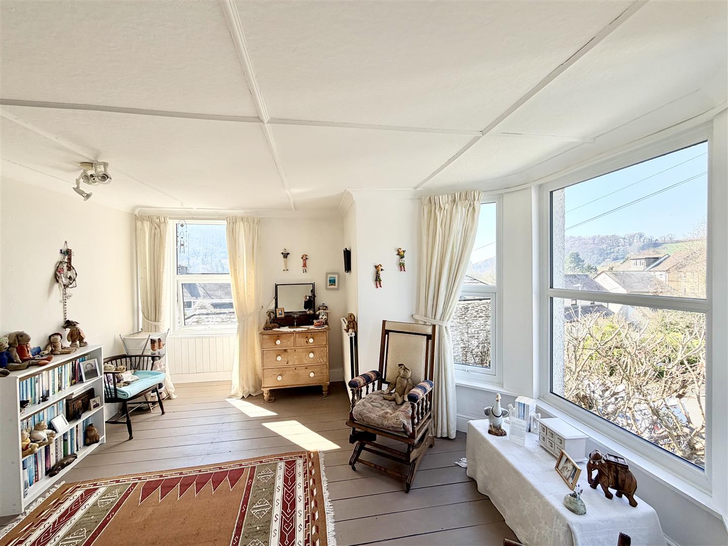 Painted exposed wooden floorboards. uPVC double-glazed bay window to the front & uPVC double-glazed south-facing window to the side.
