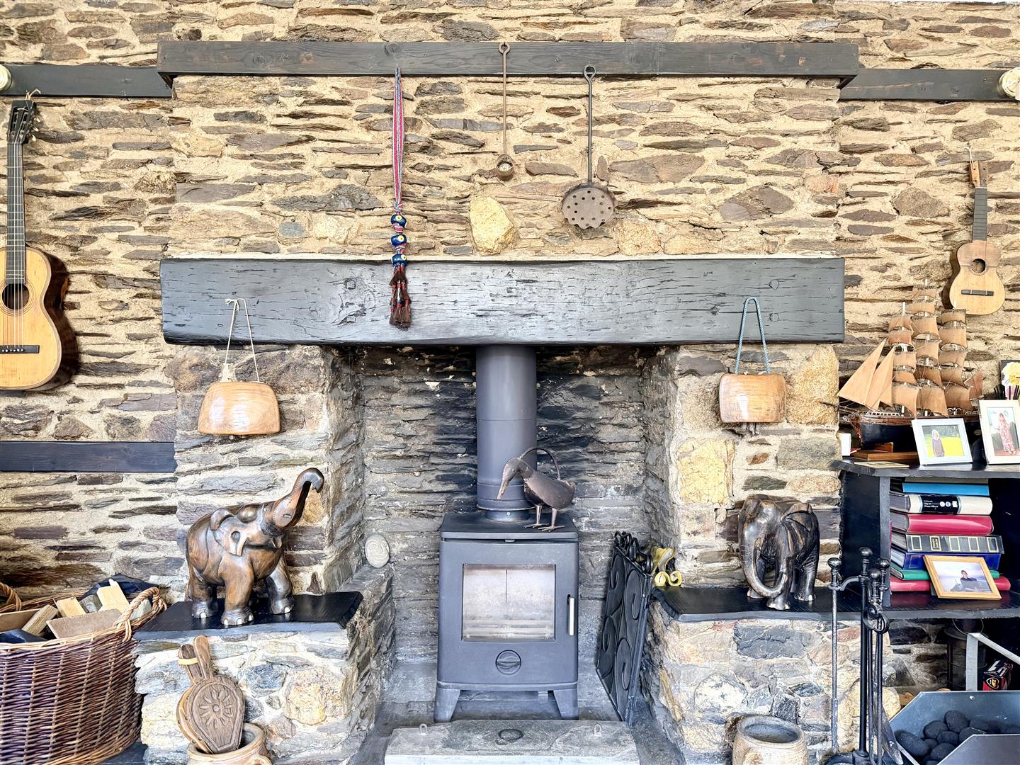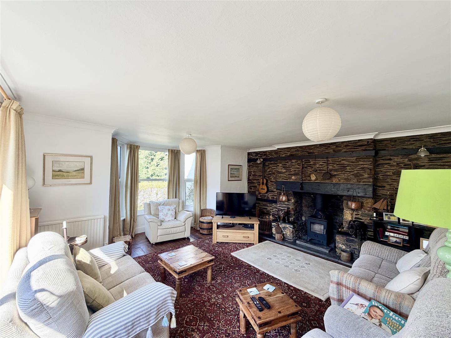 Stunning sitting room with wood burner inset into an Inglenook style fireplace running along one wall. uPVC double-glazed bay window to the front. Further large uPVC double-glazed south-facing window to the side with a window seat. Exposed wooden floorboards.