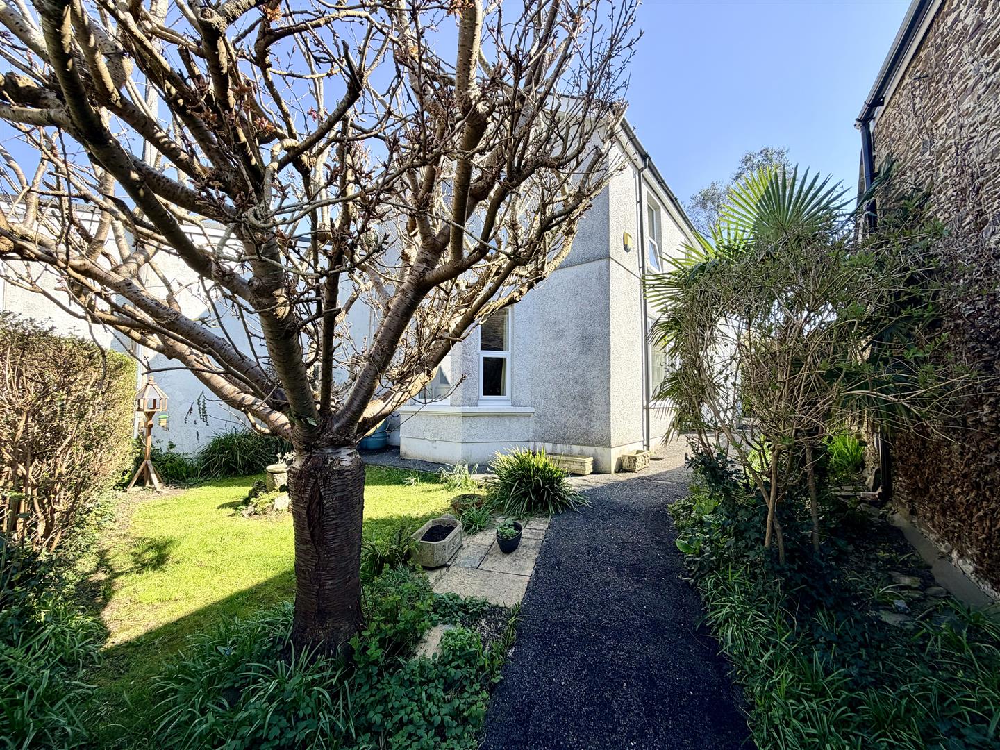 The property is approached via a wrought iron gate which opens to a tarmac path, leading towards the entrance into the porch & a wooden gate giving access to the rear garden. The main front garden is laid to lawn with inset shrubs, plants & trees to border. Bordering the path running alongside the property is a flower bed with inset shrubs & plants.