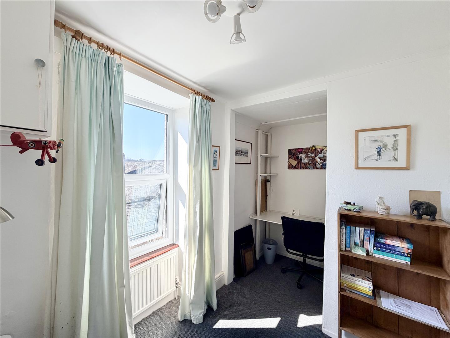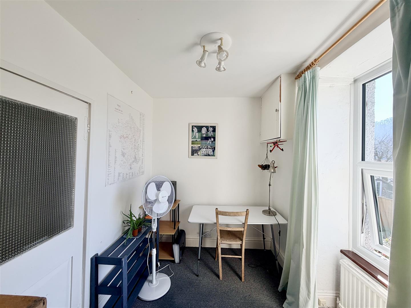 Currently being used as a study. One section of the room partly partitioned off. uPVC double-glazed south-facing window to the side.