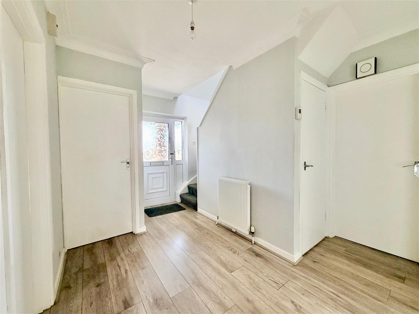 Providing access to the ground floor accommodation. 2 built-in cupboards with shelving. Stairs rising to the first floor. Laminate flooring.