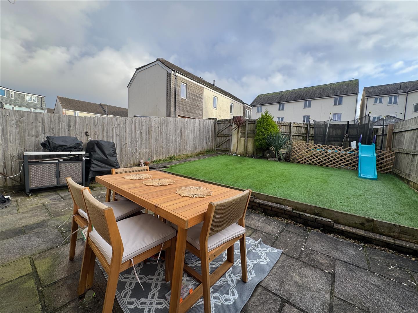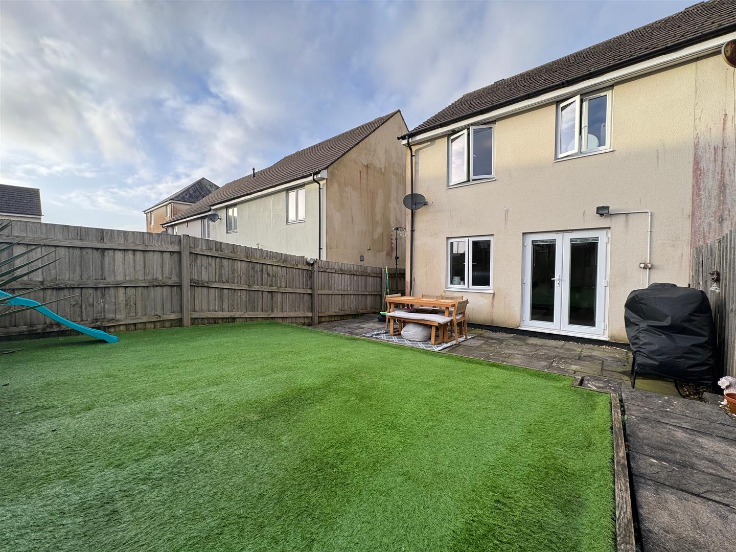 The property is approached via a paved path leading to the front door, this is bordered on one side by a section of stone chippings. To the rear a south-facing rear garden. A large paved patio seating area, providing a nice space to entertain family & friends on. A couple of steps lead up to a path leading to the rear boundary, whereby there is a wooden gate. Running along one side is a section of astroturfing. Boundaries are wood panel fencing. Allocated car parking space to the rear.
