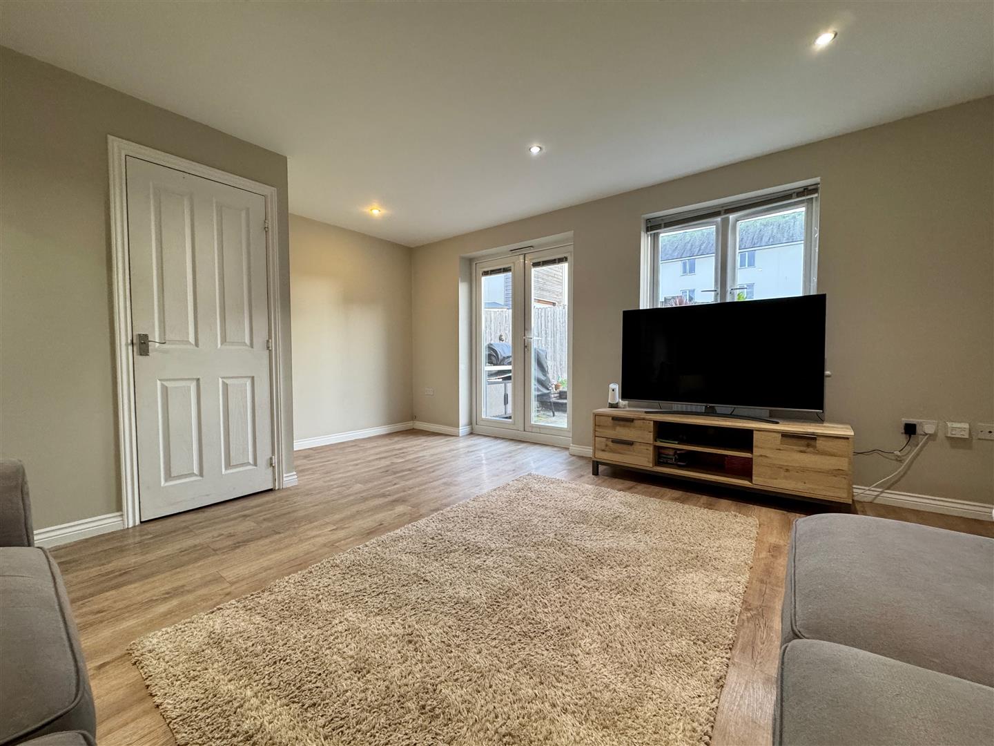 Wood-effect LVT flooring. Ceiling spotlights. Door to under-stairs storage cupboard. Ample space for dining table. uPVC double-glazed French doors open to the rear garden. uPVC double-glazed window to the rear.