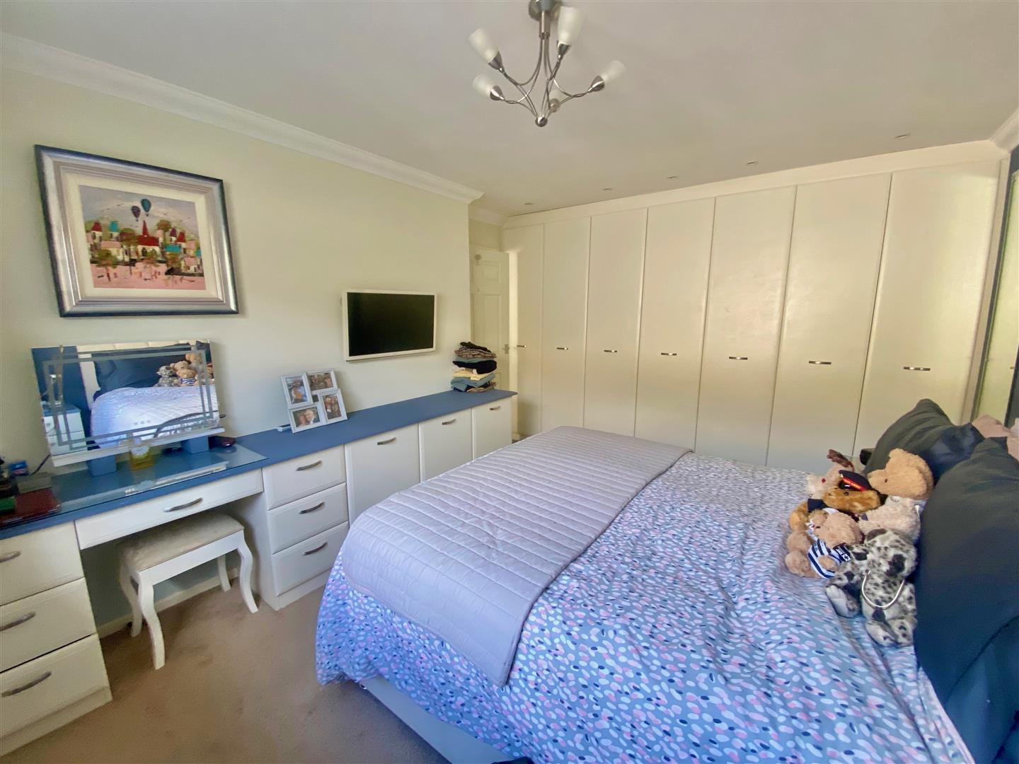 Range of built-in wardrobes, dressing table and storage units. uPVC double-glazed window to the rear elevation.