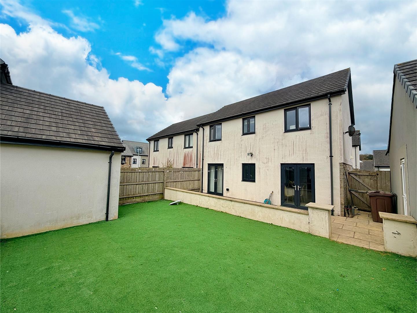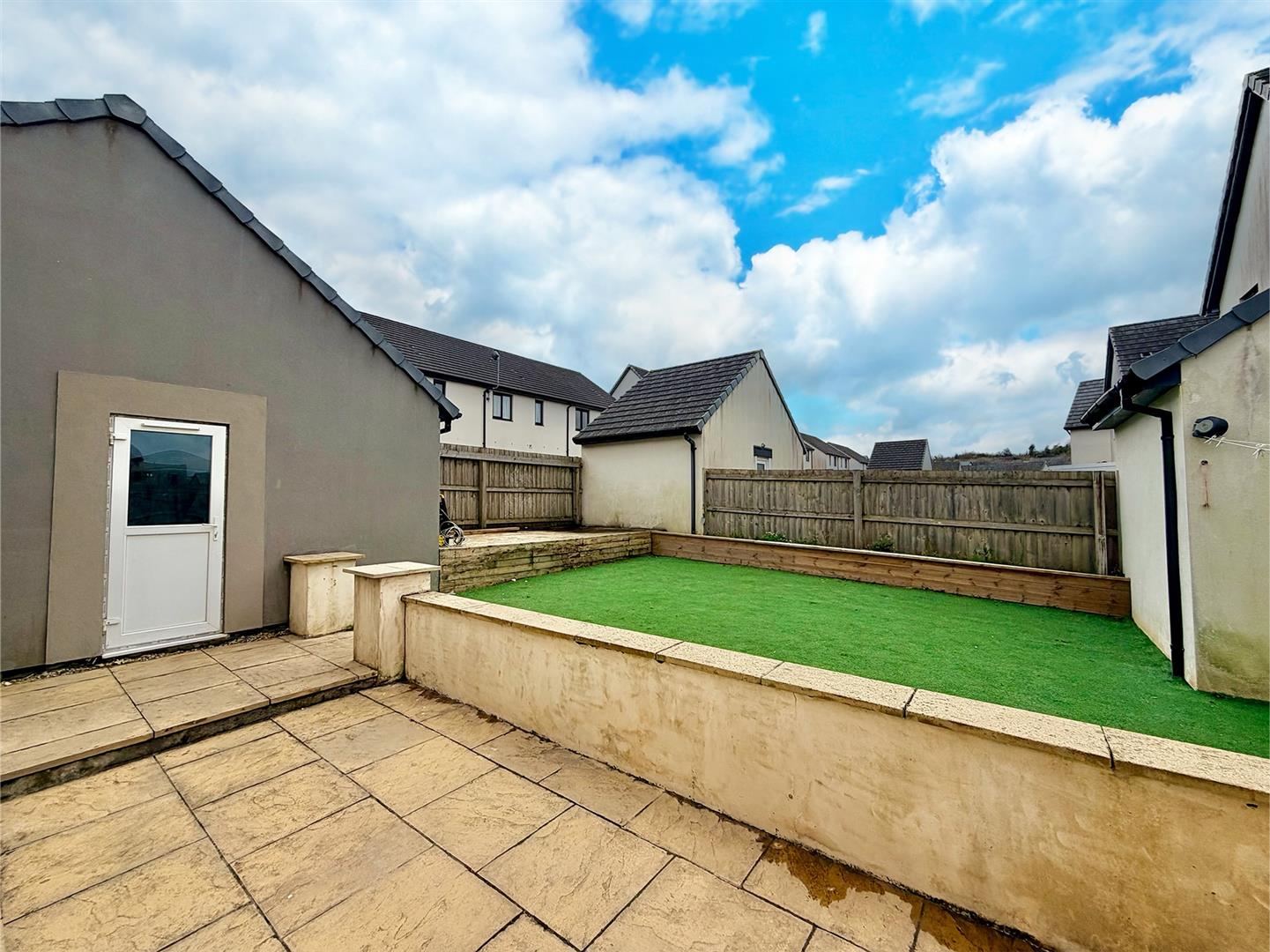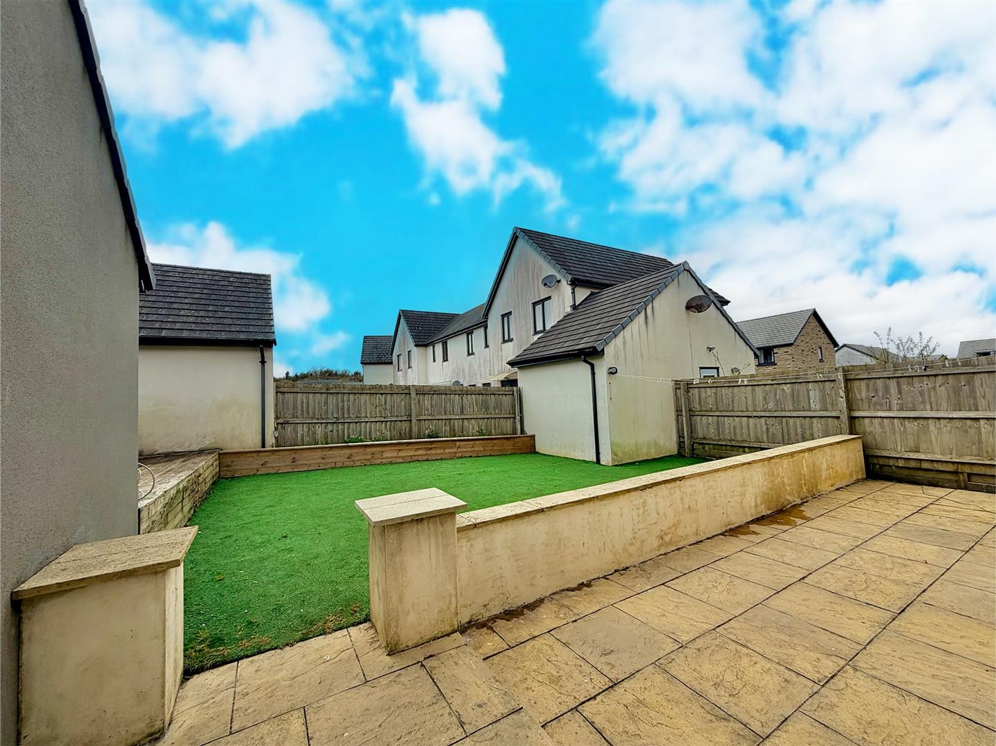 A driveway provides off-road parking and leads to the garage. There are areas laid to paving and slate chippings. A timber gateway opens between the house and the garage and leads to the rear garden. The rear garden has been landscaped with a generous paved patio area, beyond which the garden is laid to artificial grass and an area of decking. There is access to the garage, outside light, outside tap and outside power points.