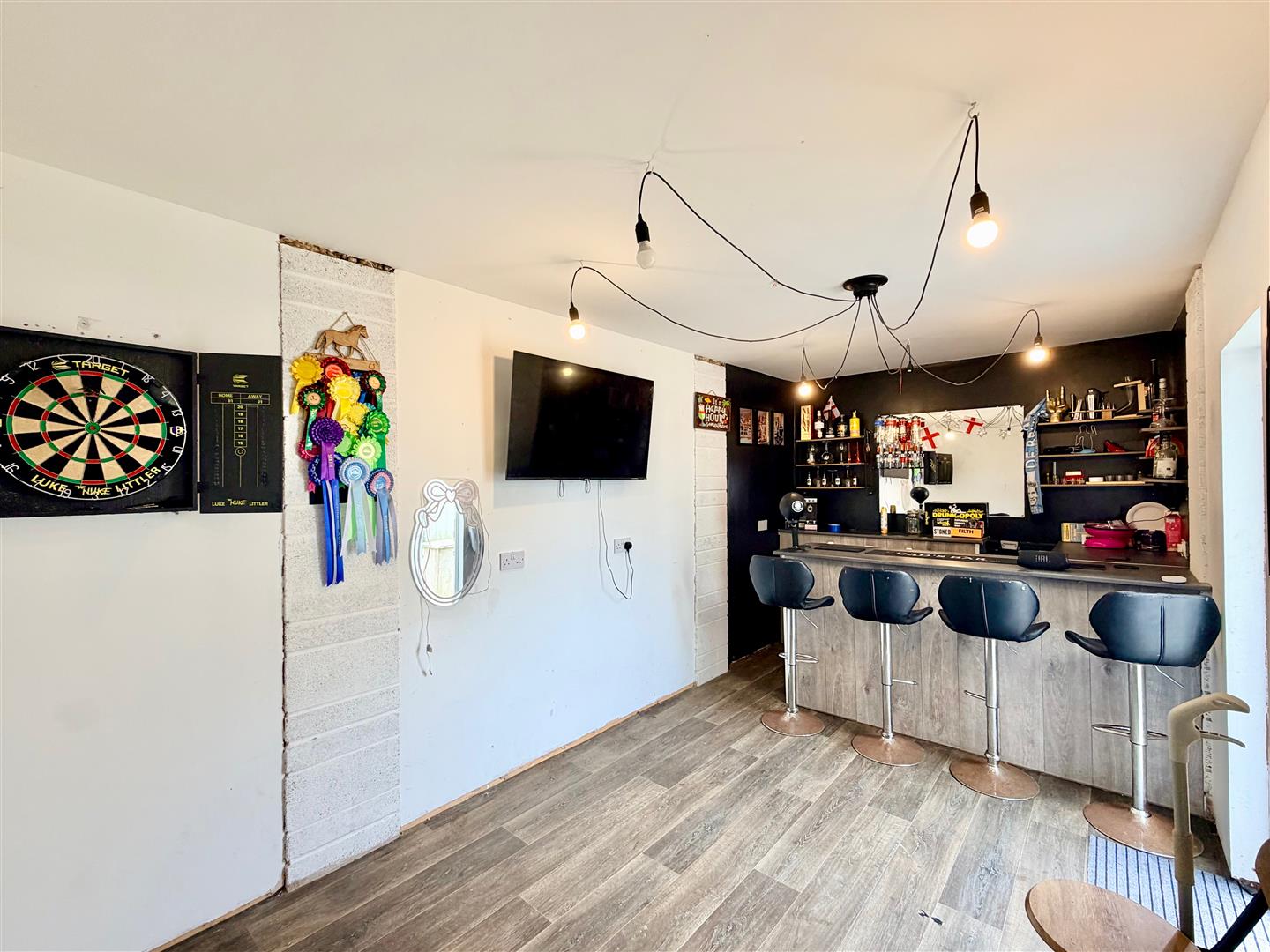 The garage has been utilised as an entertainment room with a built-in bar. Side access door.
