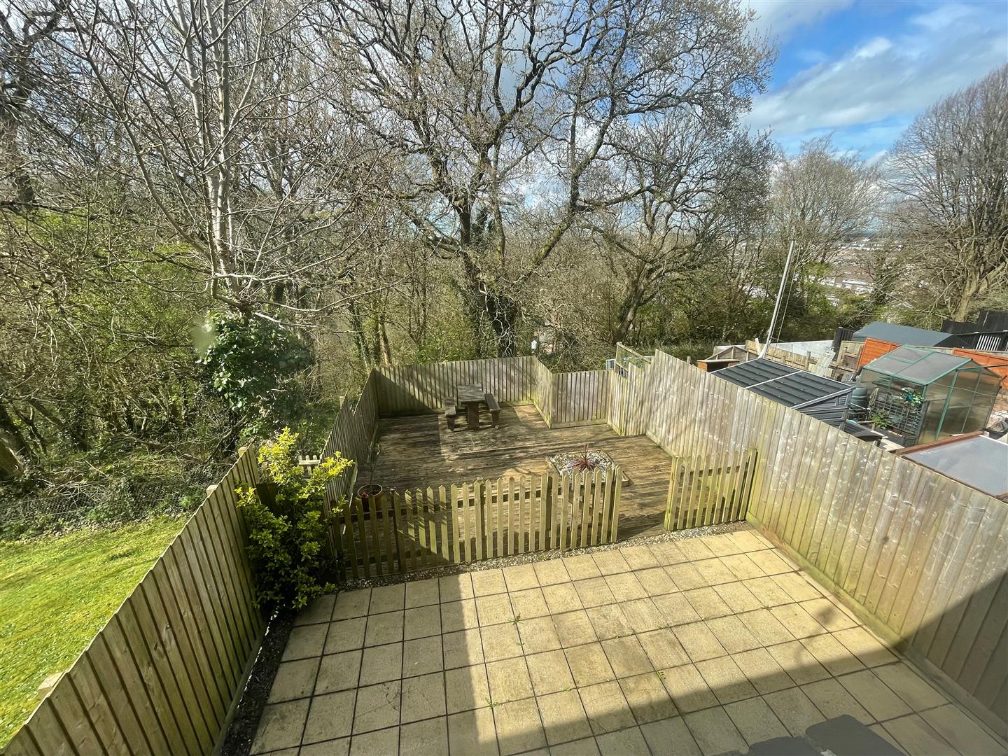 To the front of the property is a gravelled, planted and decked front garden area. There is an outside storage shed. To the rear, there is a fenced enclosed garden laid out on 2 levels with paving and decking. The garden backs onto local woodland providing a lovely natural backdrop.