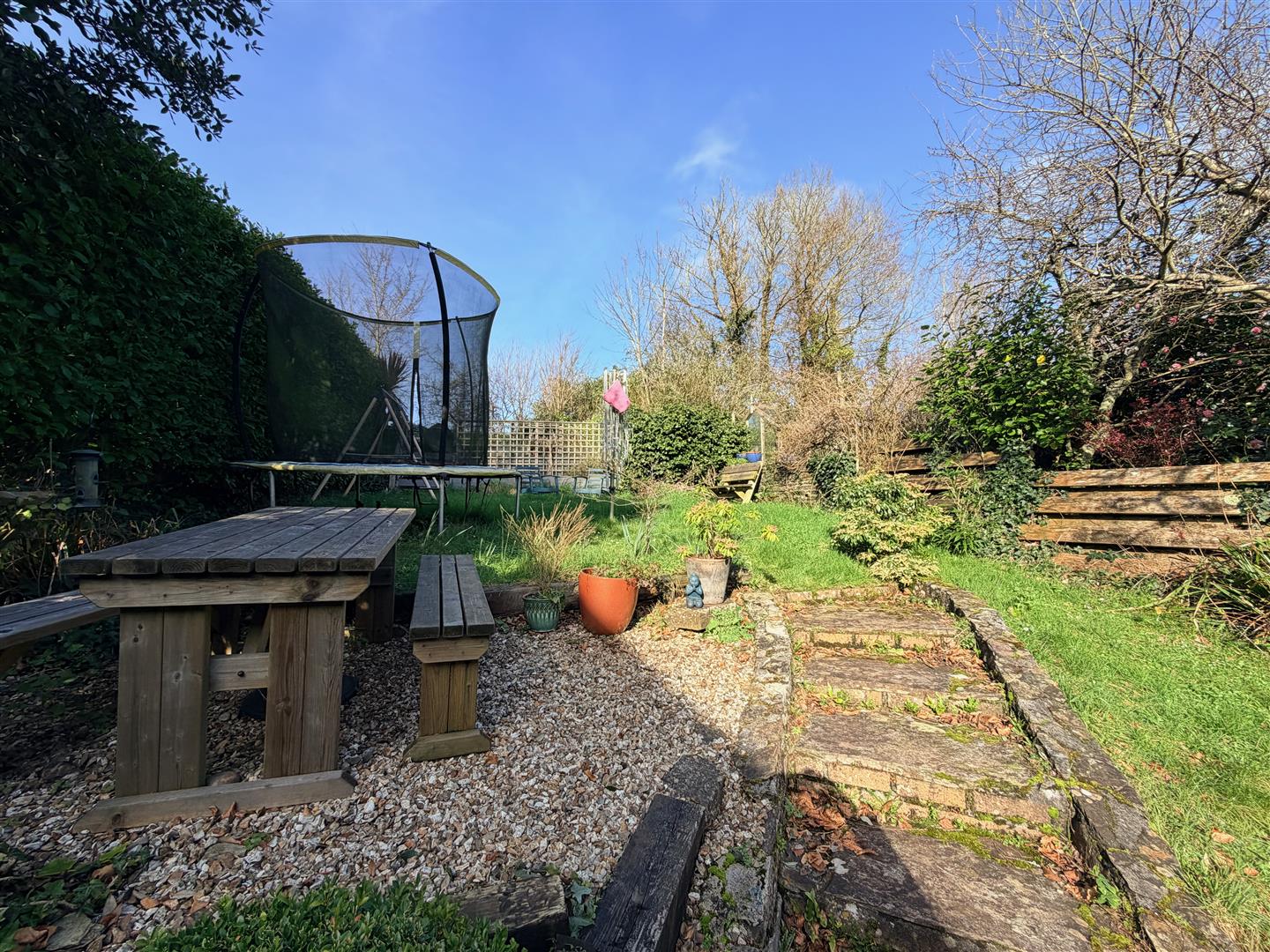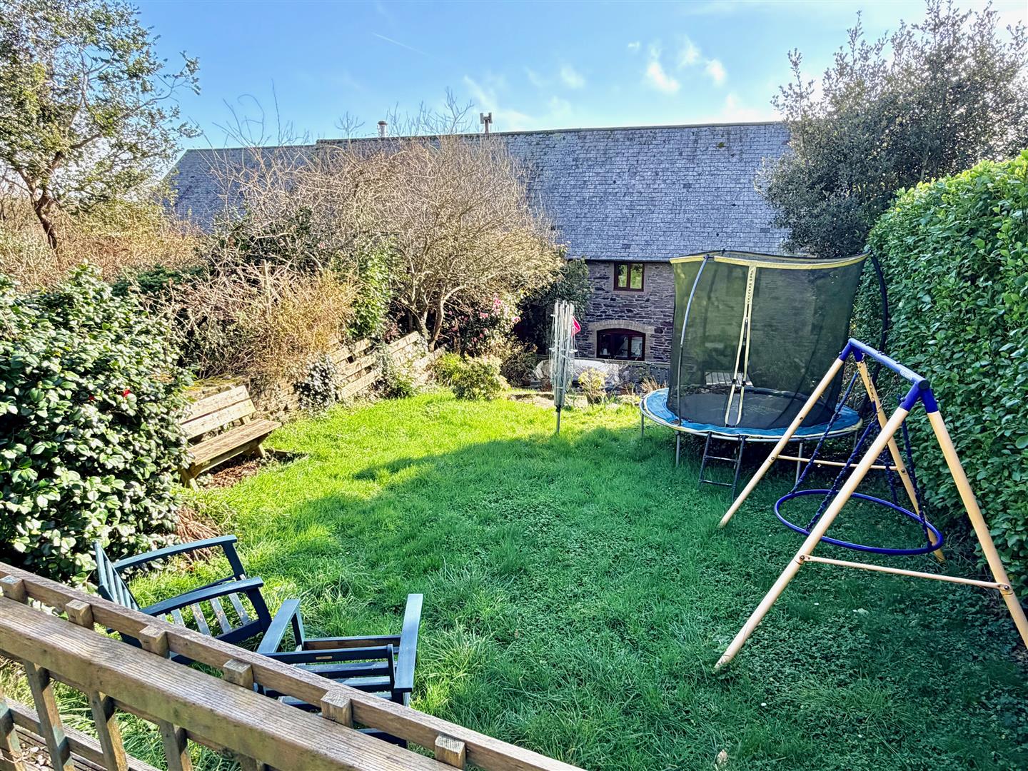 Natural stone steps provide access to the landscaped gardens with areas laid to decking and lawn together with an area laid to chippings. At the top of the garden there is a raised decking area providing countryside views.