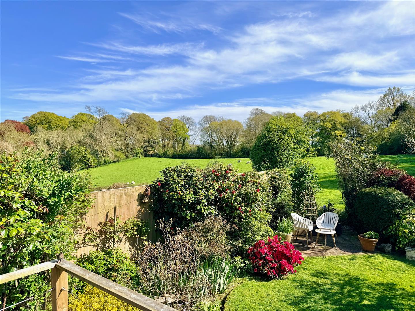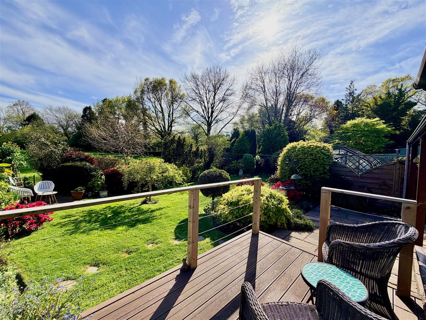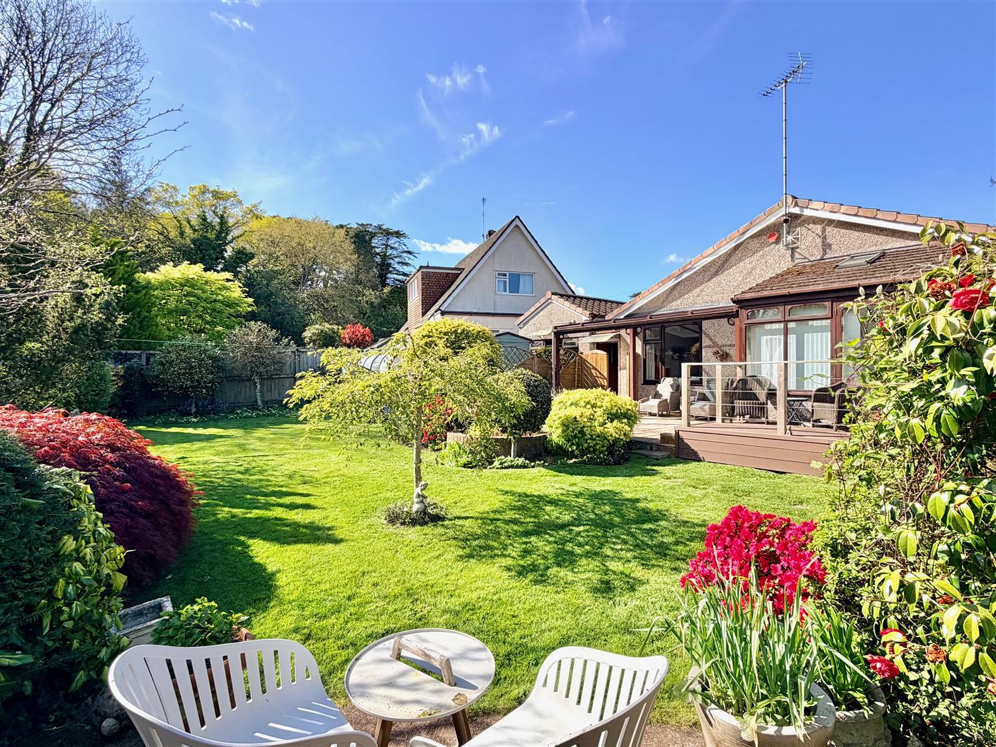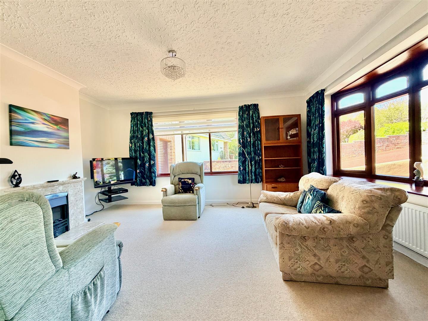 A tarmac driveway leading to the garage and providing off-road parking. The front garden has areas laid to chippings and shrubs. A pathway leading through a timber gate accesses the rear garden. The rear garden is a particular feature of this property and enjoys a southerly aspect, offers a high degree of privacy and backs onto open countryside. The garden is mainly laid to lawn with a variety of mature planting together with a patio area, composite decking area plus a covered outdoor seating area built adjacent to the rear of the bungalow. There is also a greenhouse.