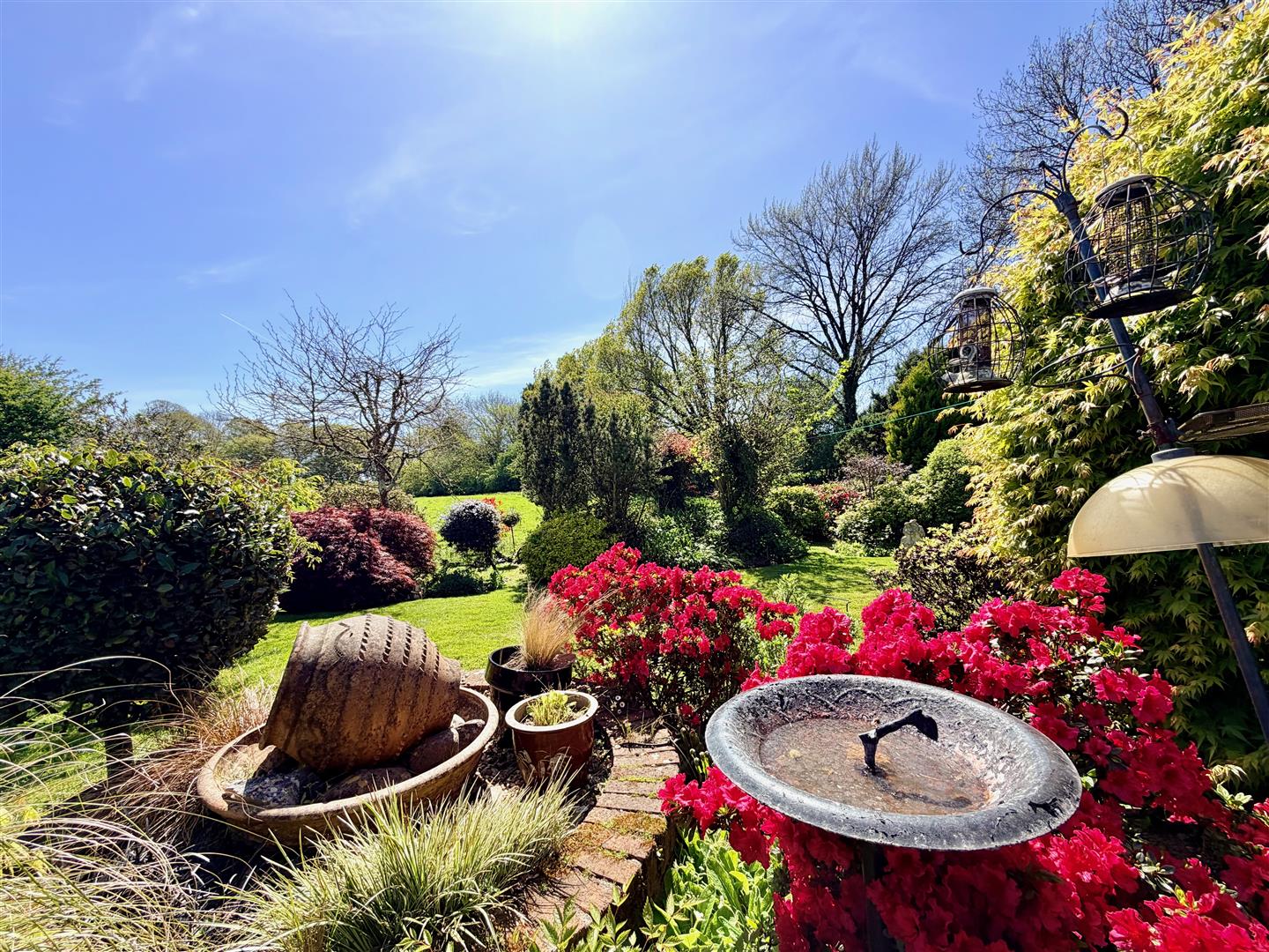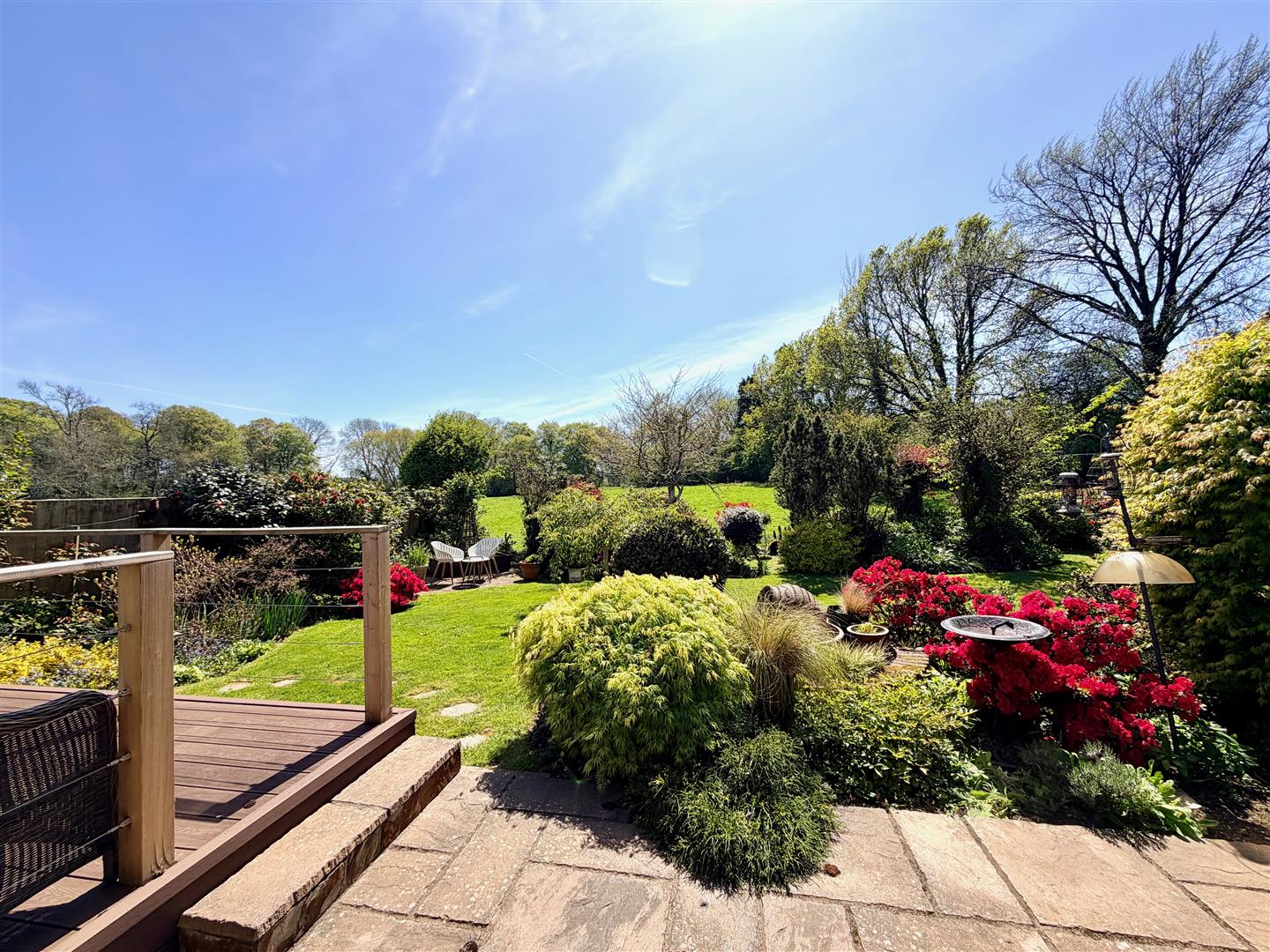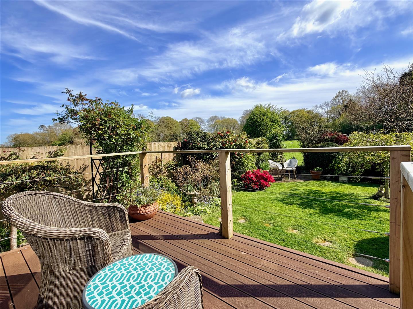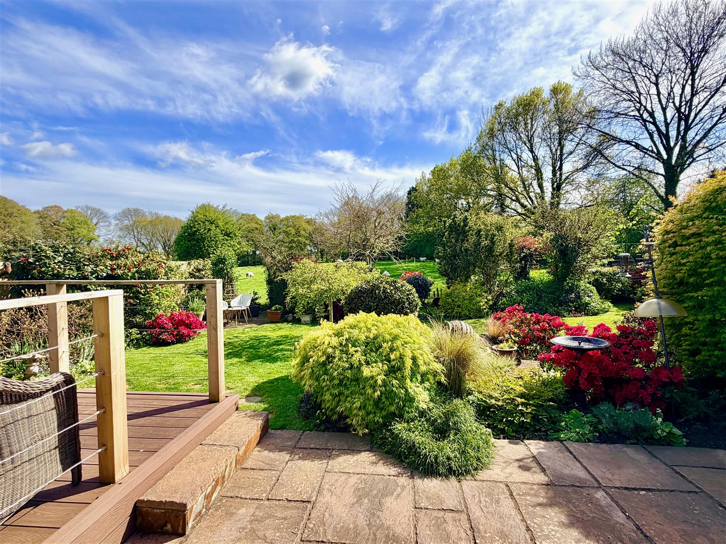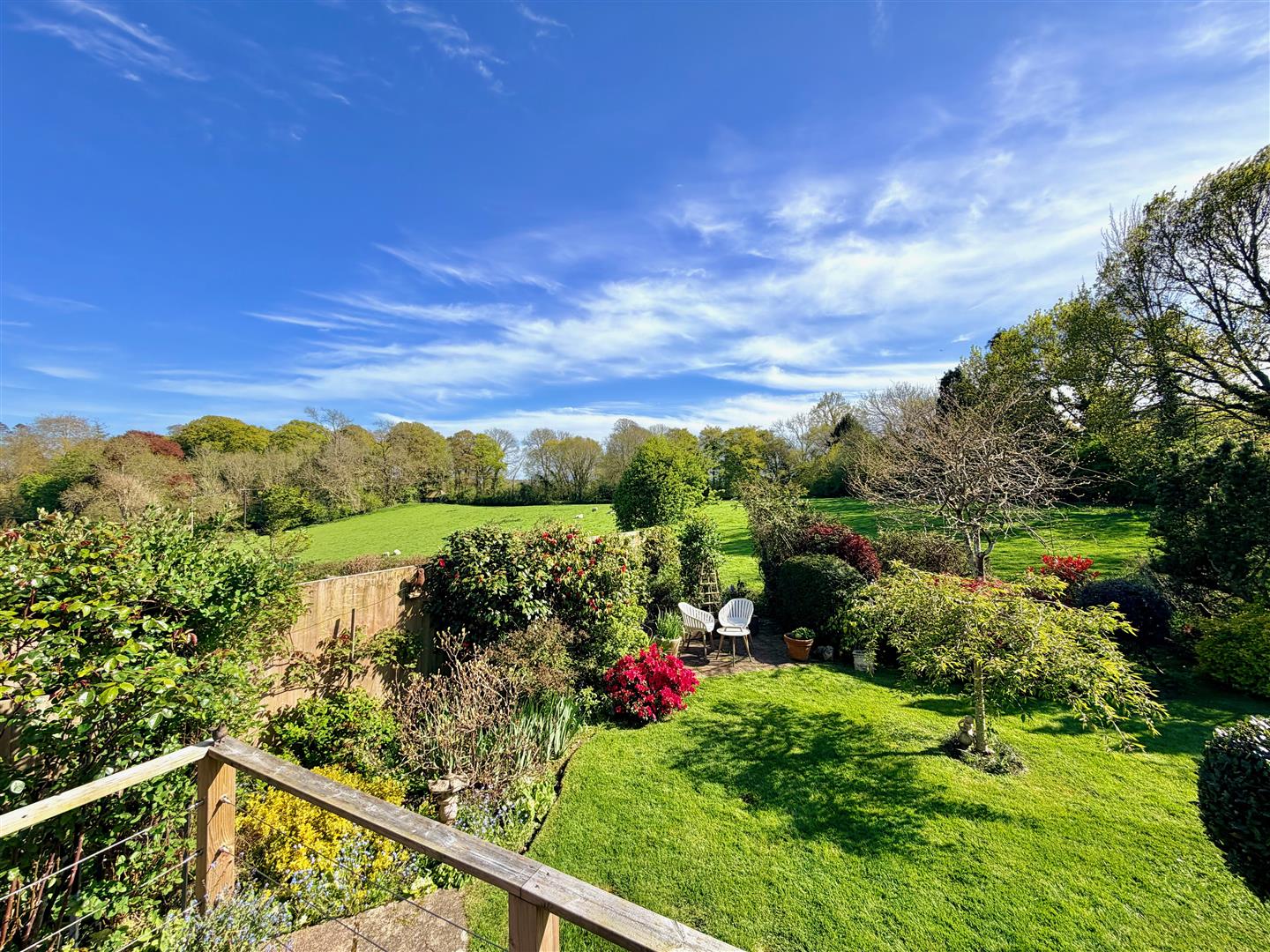 A tarmac driveway leading to the garage and providing off-road parking. The front garden has areas laid to chippings and shrubs. A pathway leading through a timber gate accesses the rear garden. The rear garden is a particular feature of this property and enjoys a southerly aspect, offers a high degree of privacy and backs onto open countryside. The garden is mainly laid to lawn with a variety of mature planting together with a patio area, composite decking area plus a covered outdoor seating area built adjacent to the rear of the bungalow. There is also a greenhouse.
