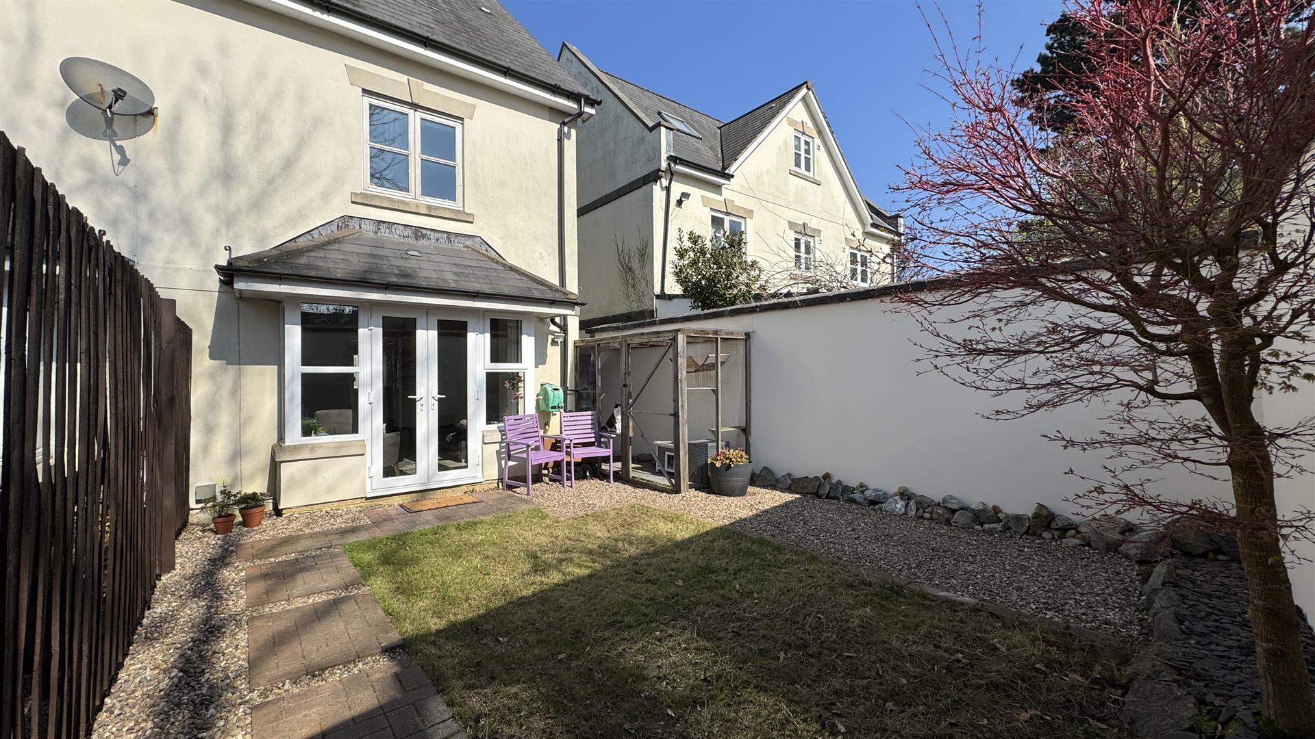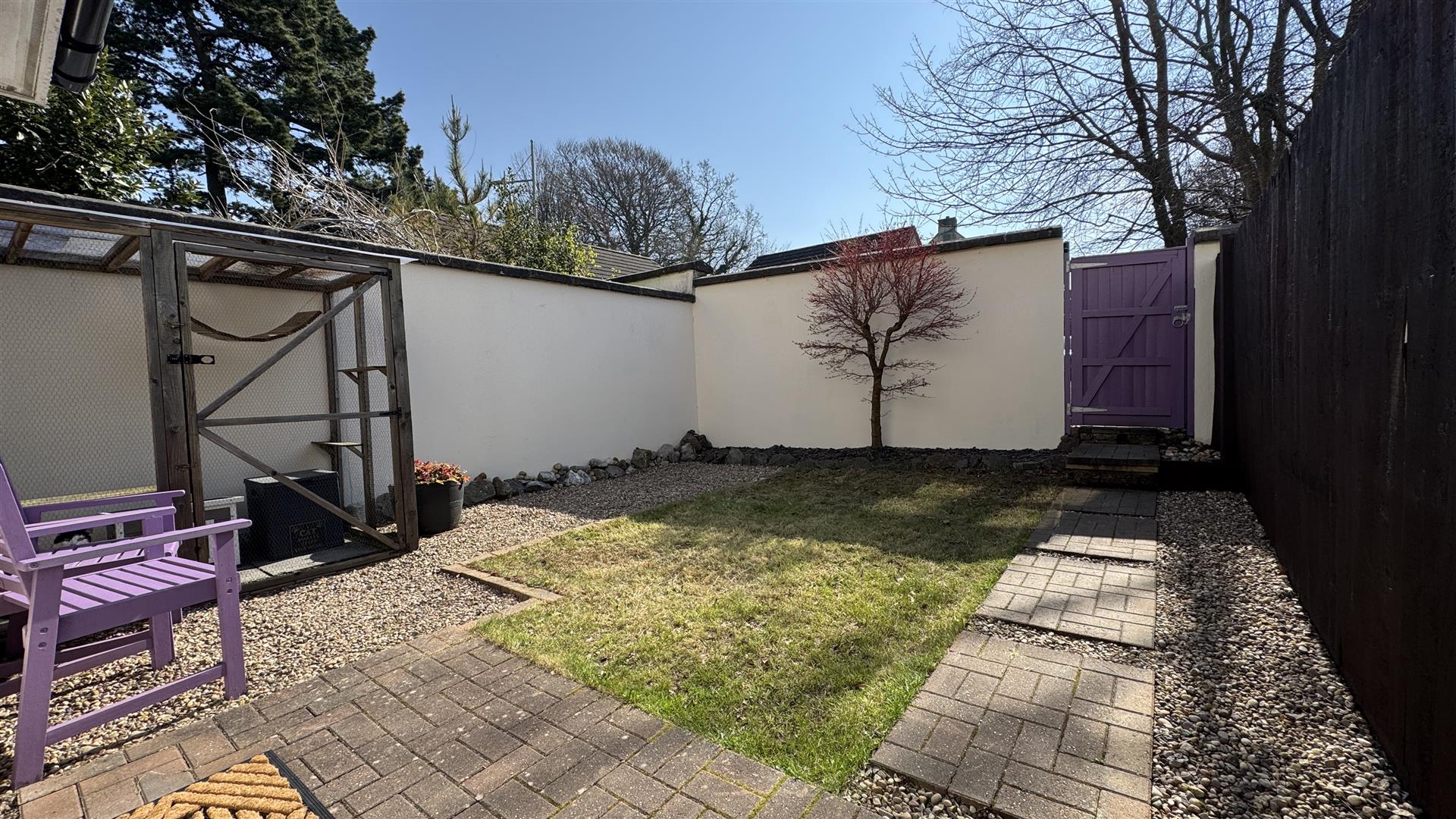 To the rear an enclosed south-facing garden which consists of a brick-paved seating area, stone chipped to one side with a catio. A paved path runs through to a gate towards the rear boundary, being stone chipped on one side & lawned on the other. A wooden access gate gives access to the rear where the garage stands in a block of 3. A car parking space to the fore of the garage. A gate leads out to a storage area to the side of the house, which is shared with the neighbour.
