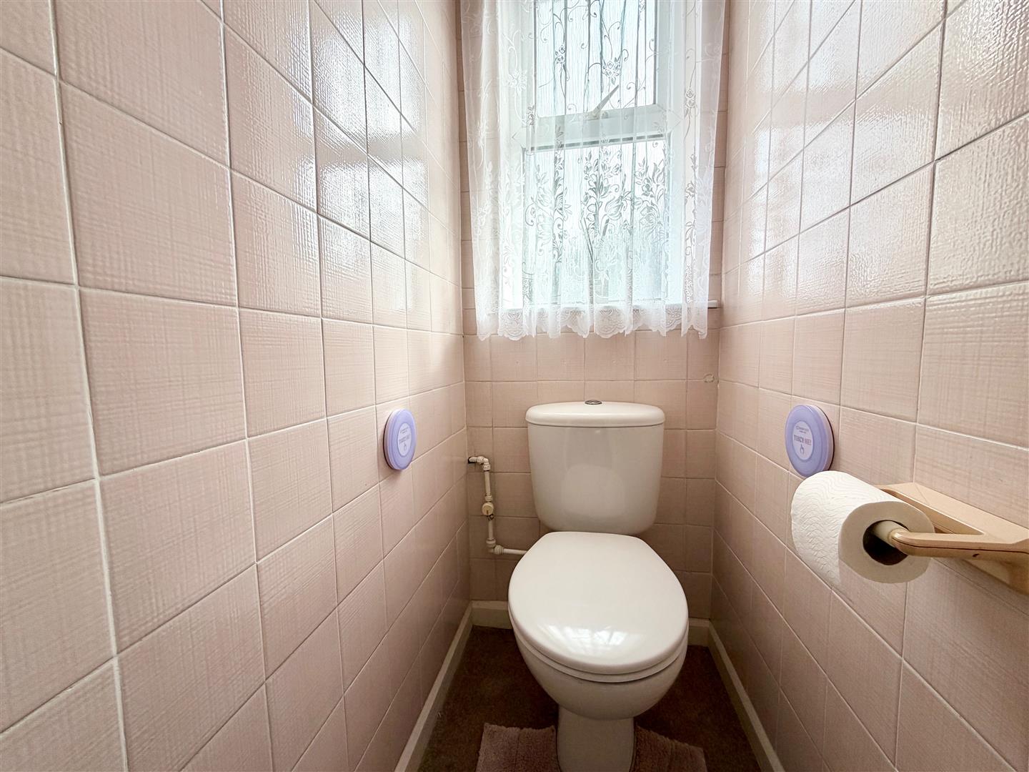 Close-coupled wc. Obscured uPVC double-glazed window to the side elevation.