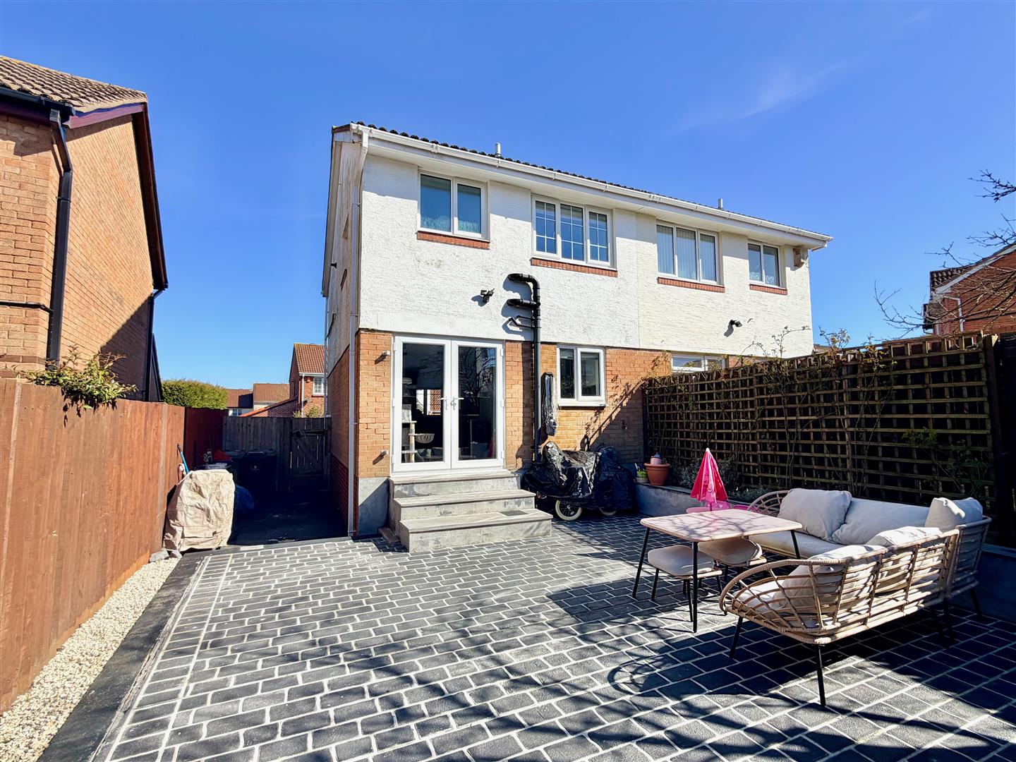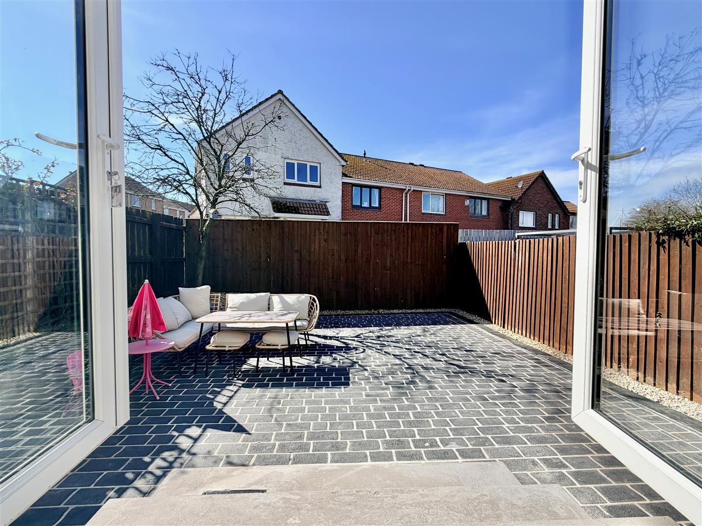 The front garden is laid to lawn. A tarmac driveway runs alongside to a timber gate, providing off-road parking. The rear garden enjoys a south-westerly aspect and has a concrete patterned patio with a chipping border, plus some shrubs and an outside tap.