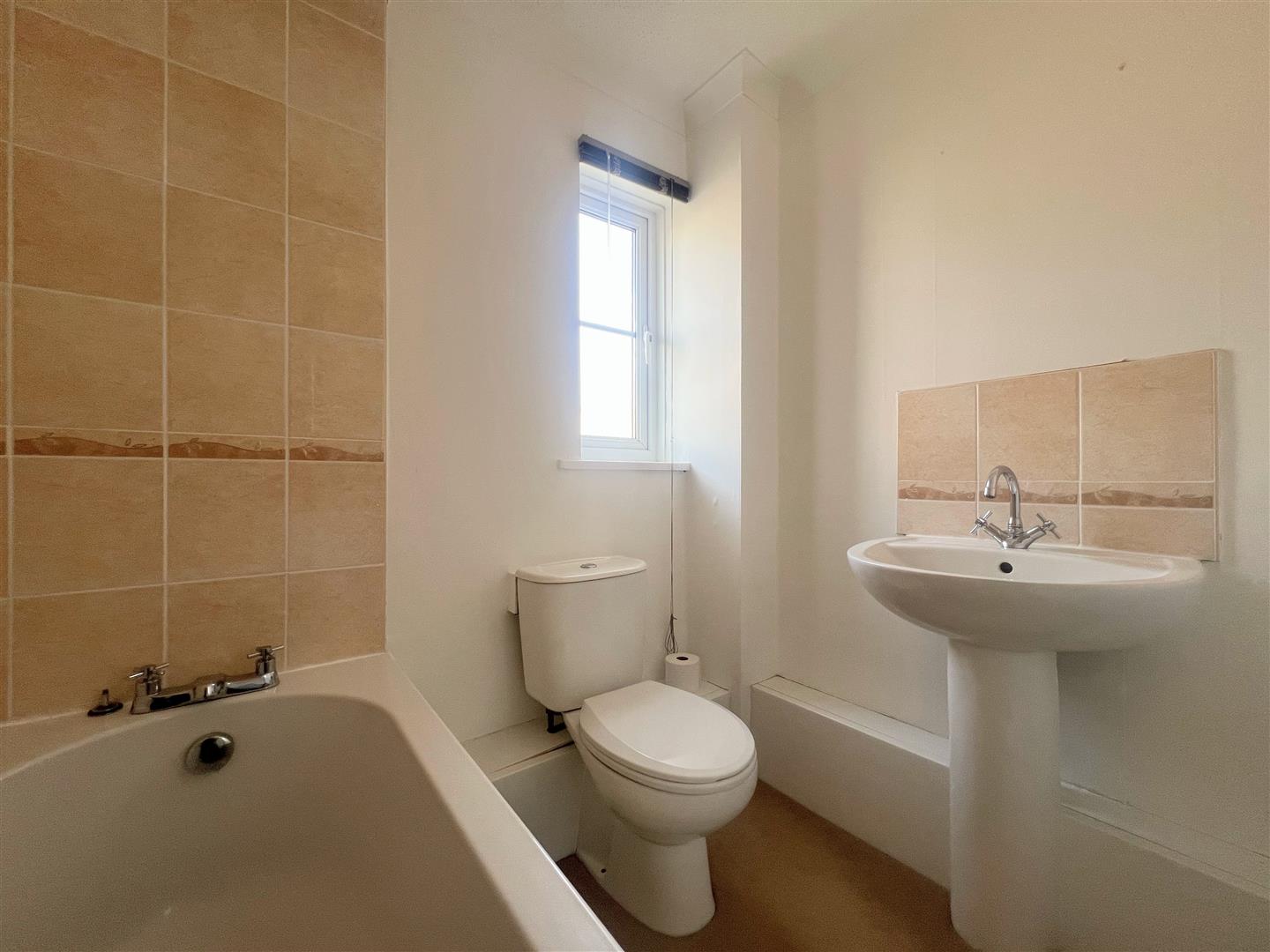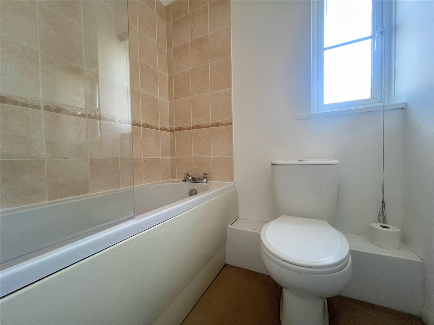 Fitted with a matching suite comprising panelled bath with mixer tap, electric shower over and glass shower screen, pedestal wash handbasin with mixer tap and close-coupled wc. Extractor. Obscured uPVC double-glazed window to the front elevation.