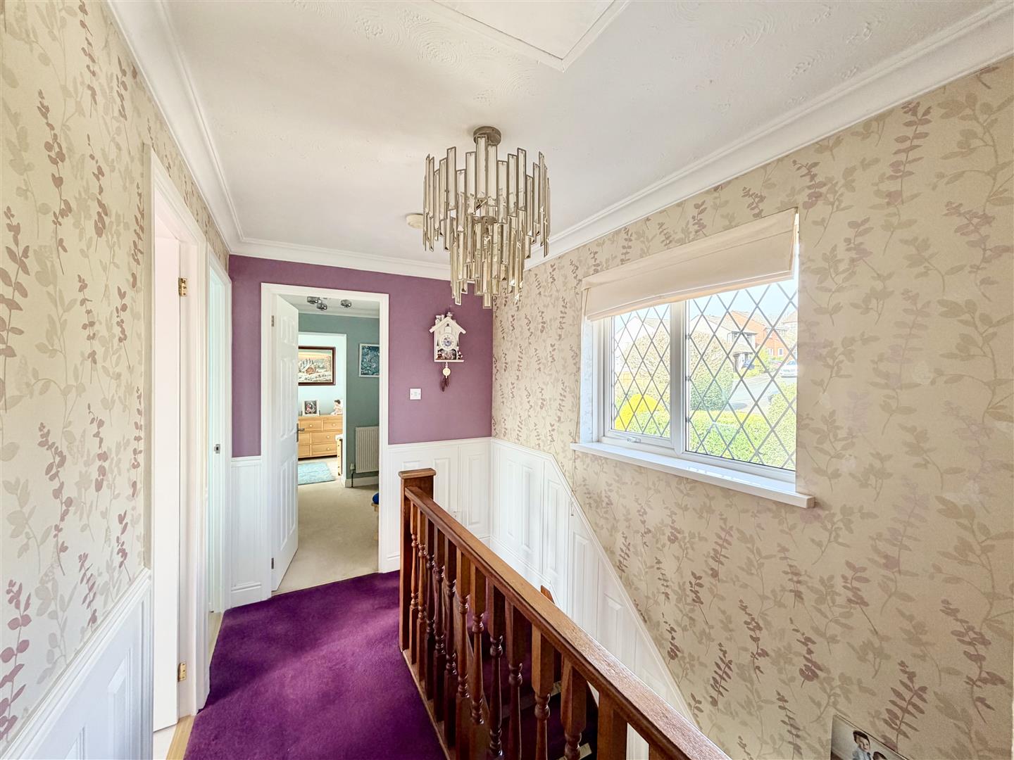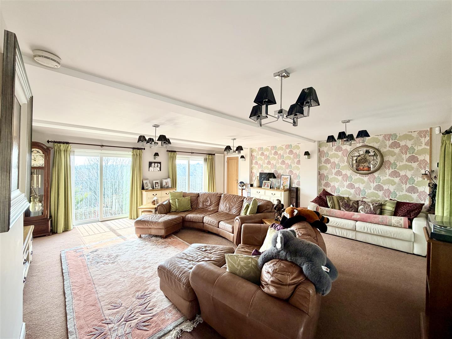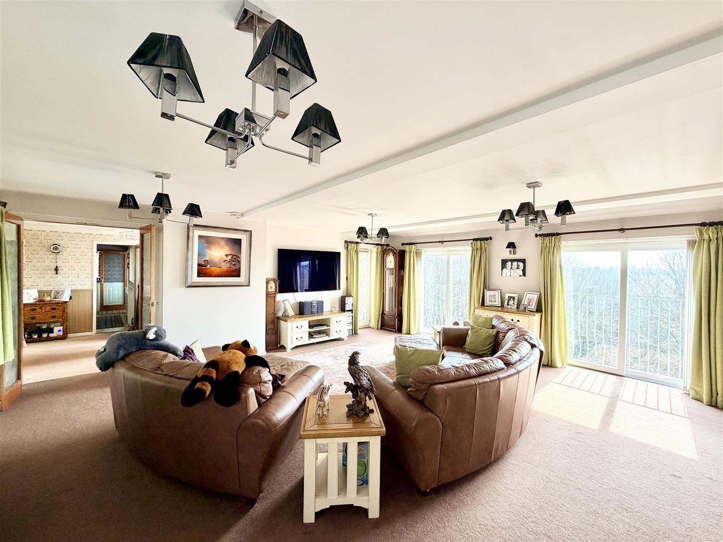 Two feet deep built-in wardrobes across one end. Two wide picture windows to the rear enjoying far reaching views. Door to;