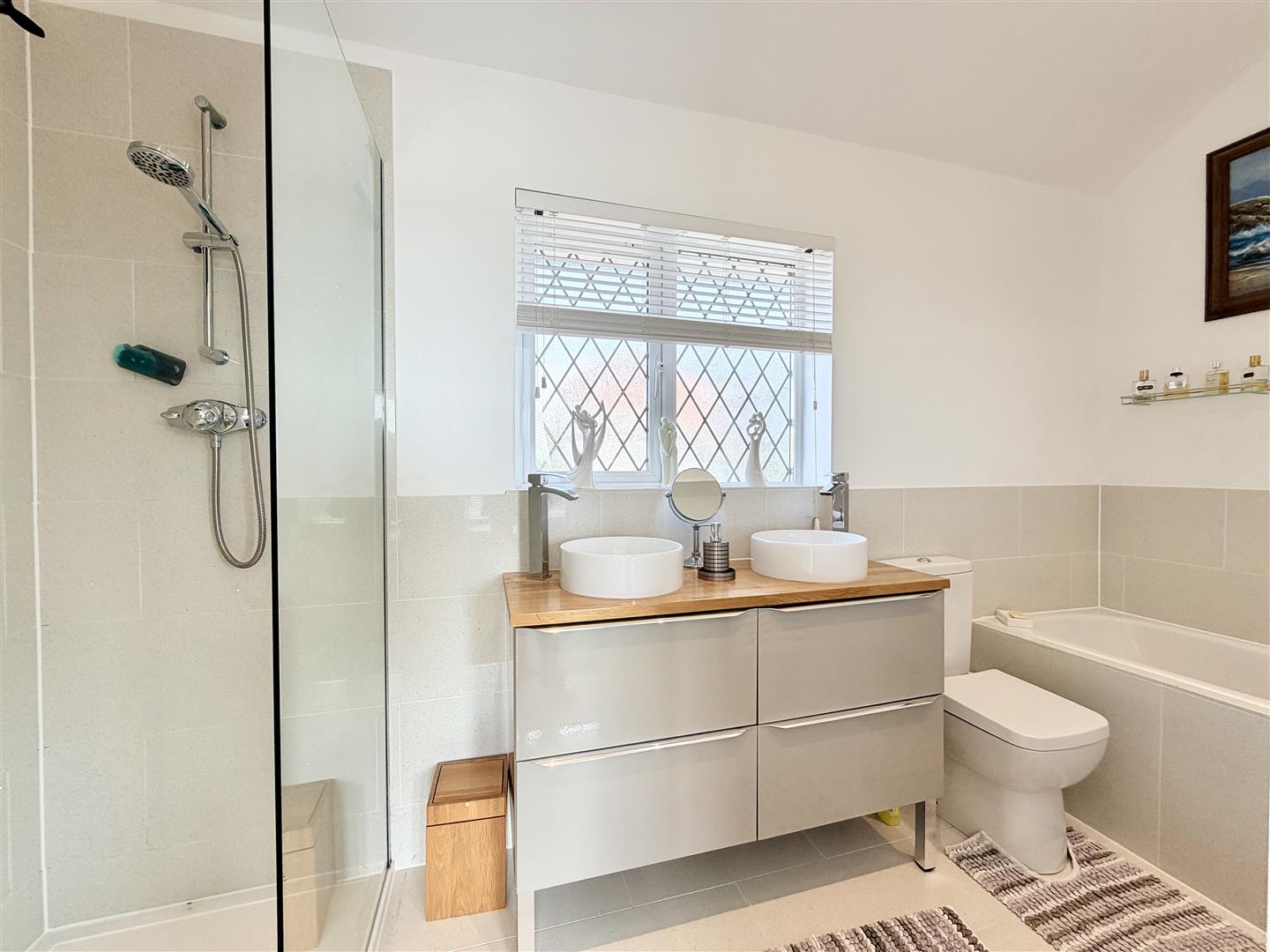Windows to the side & rear. Quality suite with large separate shower, wash hand basin, corner wc & oval panelled bath with shower mixer & handheld spray.