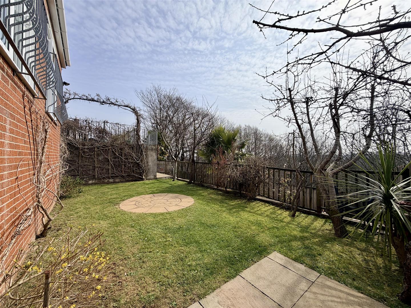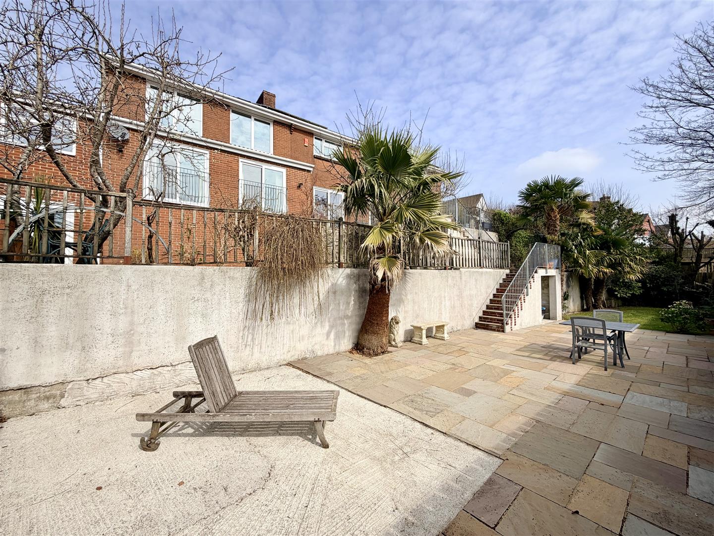 Private drive with space for up to 9 vehicles. Extensive wrap around landscaped southerly facing side & rear gardens. Landscaped with extensive ground works. Extensive patio areas ideal for alfresco entertaining. Steps down to other areas: two level lawns, further patio & wisteria covered trellis.