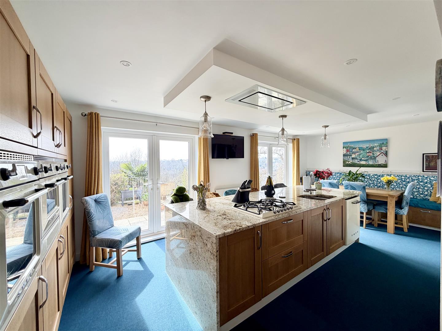 Fitted with an excellent range of integrated appliances including an upright fridge, upright freezer, 3 Smeg ovens & the central oven incorporating a microwave with hot drawer under. A large granite covered central island with under-mounted 1.5 bowl sink unit with Franke hot water tap. Boiler servicing the main part of the house.