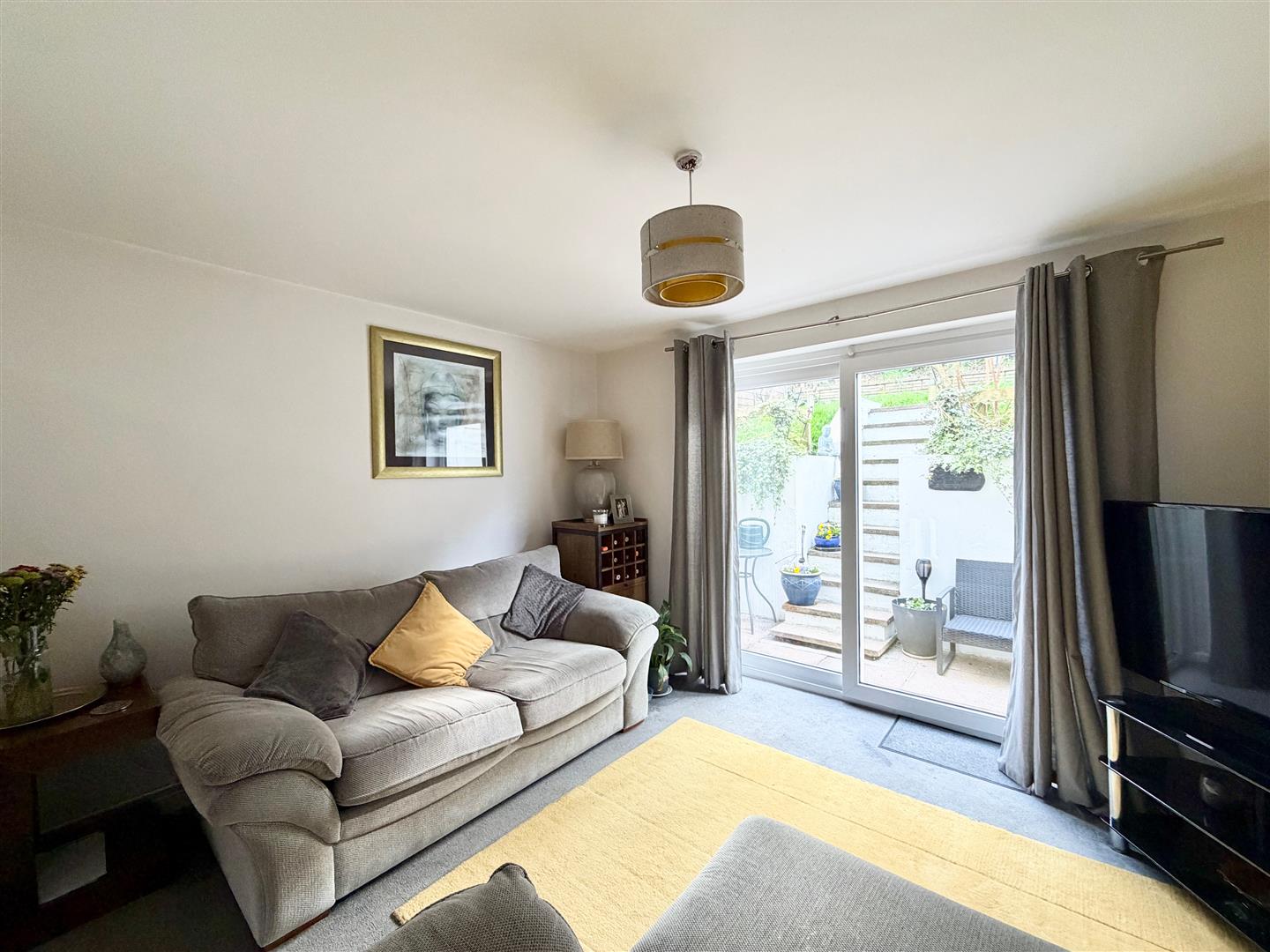 Wall-mounted electric fireplace. Stairs ascending to the landing. uPVC double-glazed sliding patio door providing access to the rear garden.