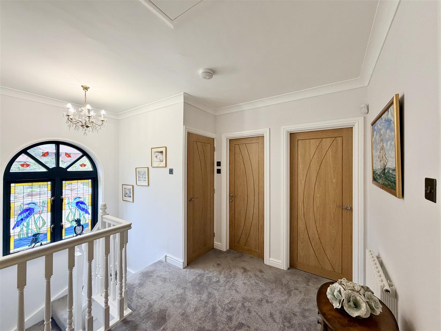 Arched decorative window to the rear.
