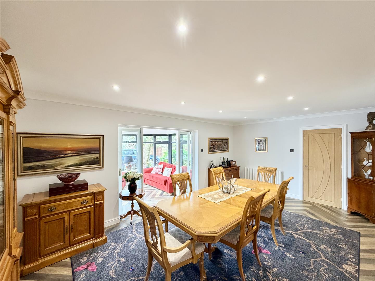 The ground floor comprises a welcoming porch and reception hallway, a large dual-aspect lounge, spacious dining room, and conservatory. There is also a cloakroom/WC, an impressive 32ft kitchen/breakfast room, utility room, and separate boiler room. A newly created study, guest bedroom, and en suite shower room provide excellent flexibility for home working or multi-generational living.