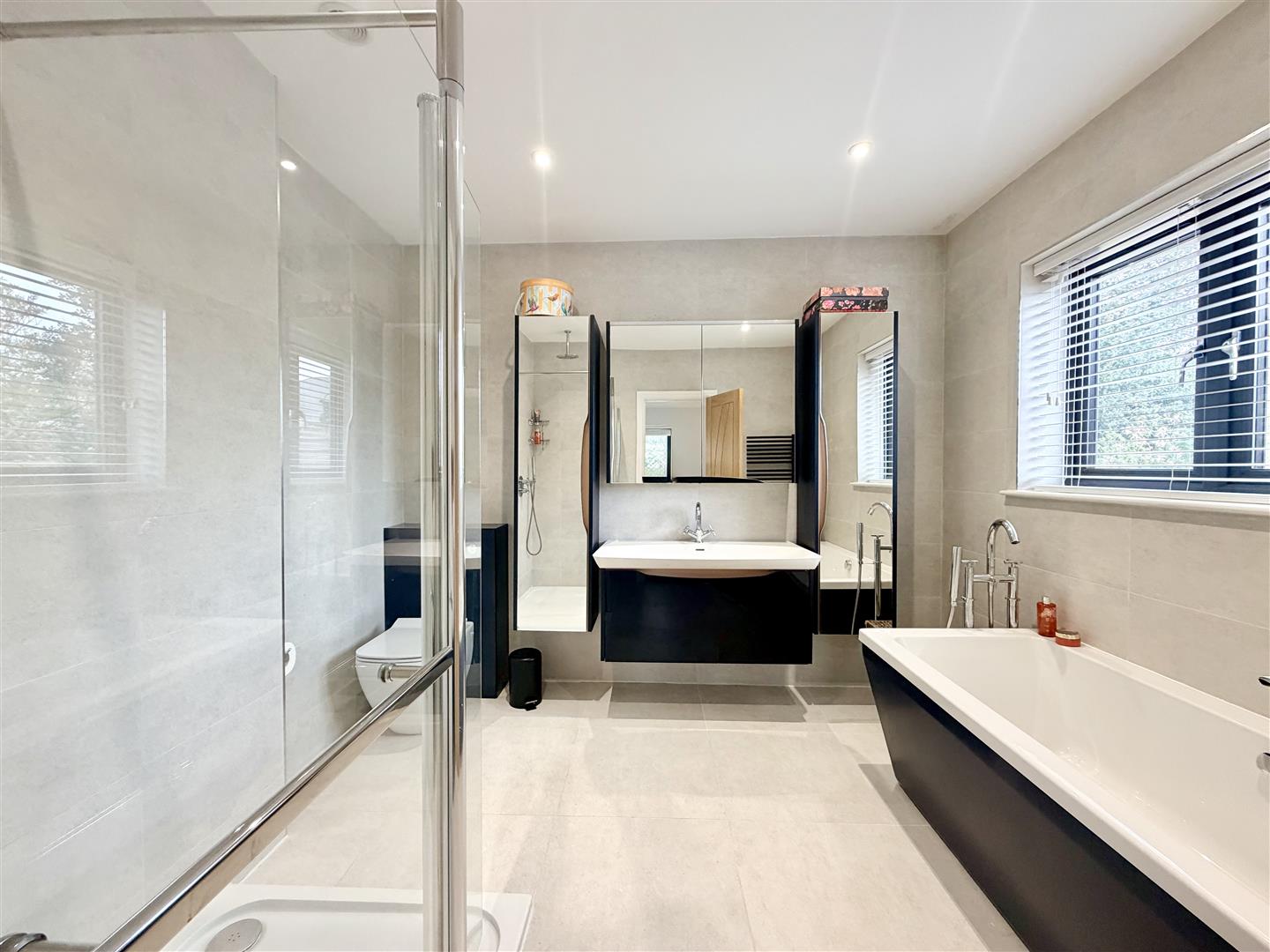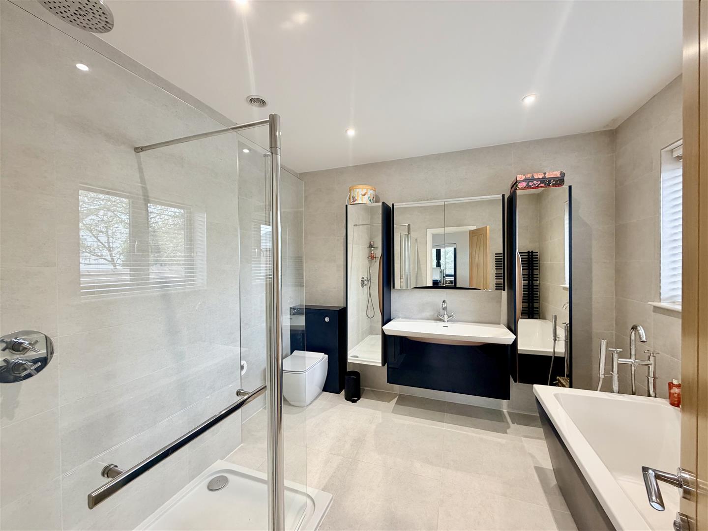 To the first floor, there are four generous double bedrooms, including a substantial principal suite with a spacious en suite bathroom. A well-appointed family shower room/WC serves the remaining bedrooms.