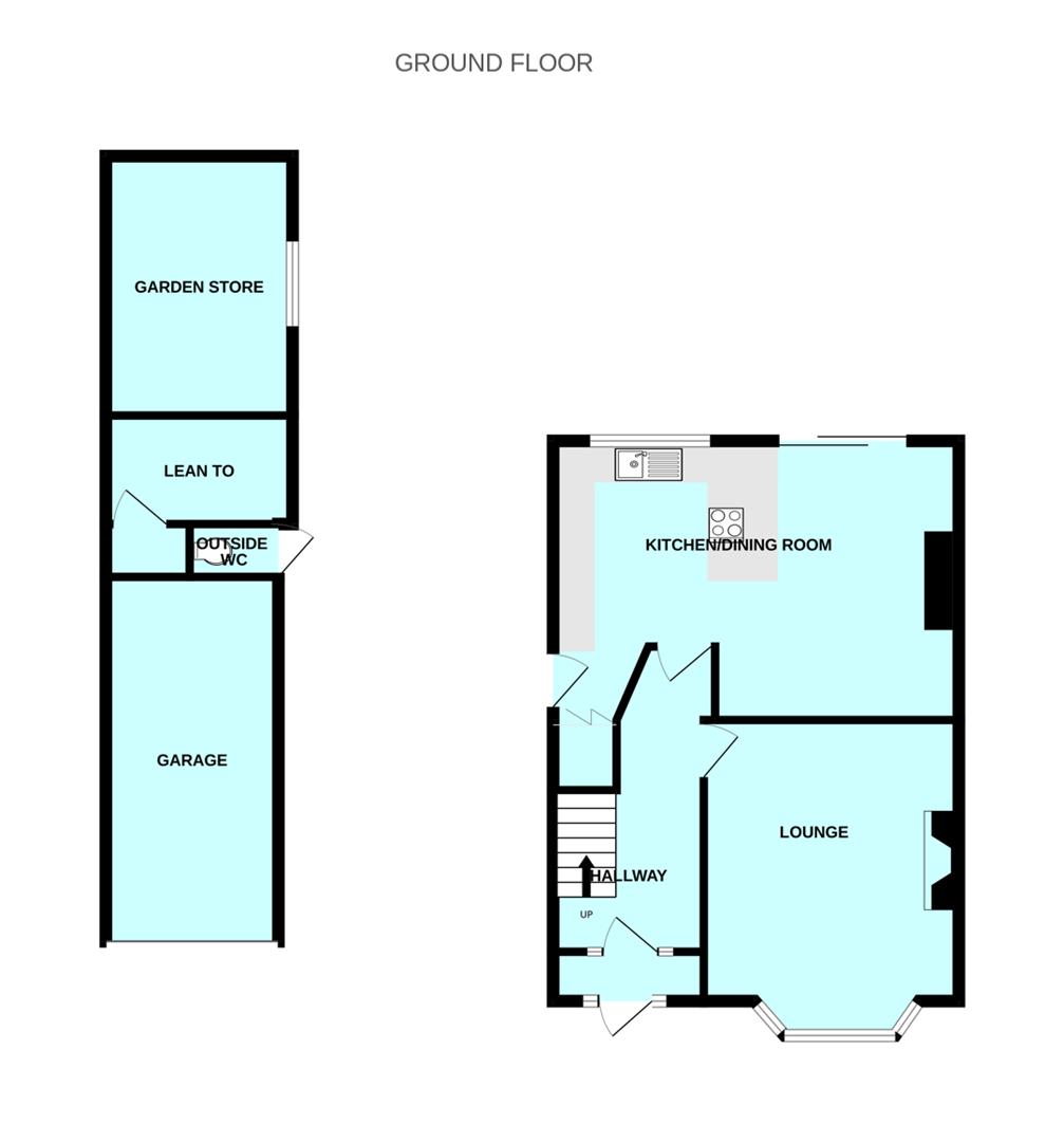 Up-&-over door to the front elevation. Space and plumbing for washing machine. Power and lighting. Obscured window to the side elevation.
